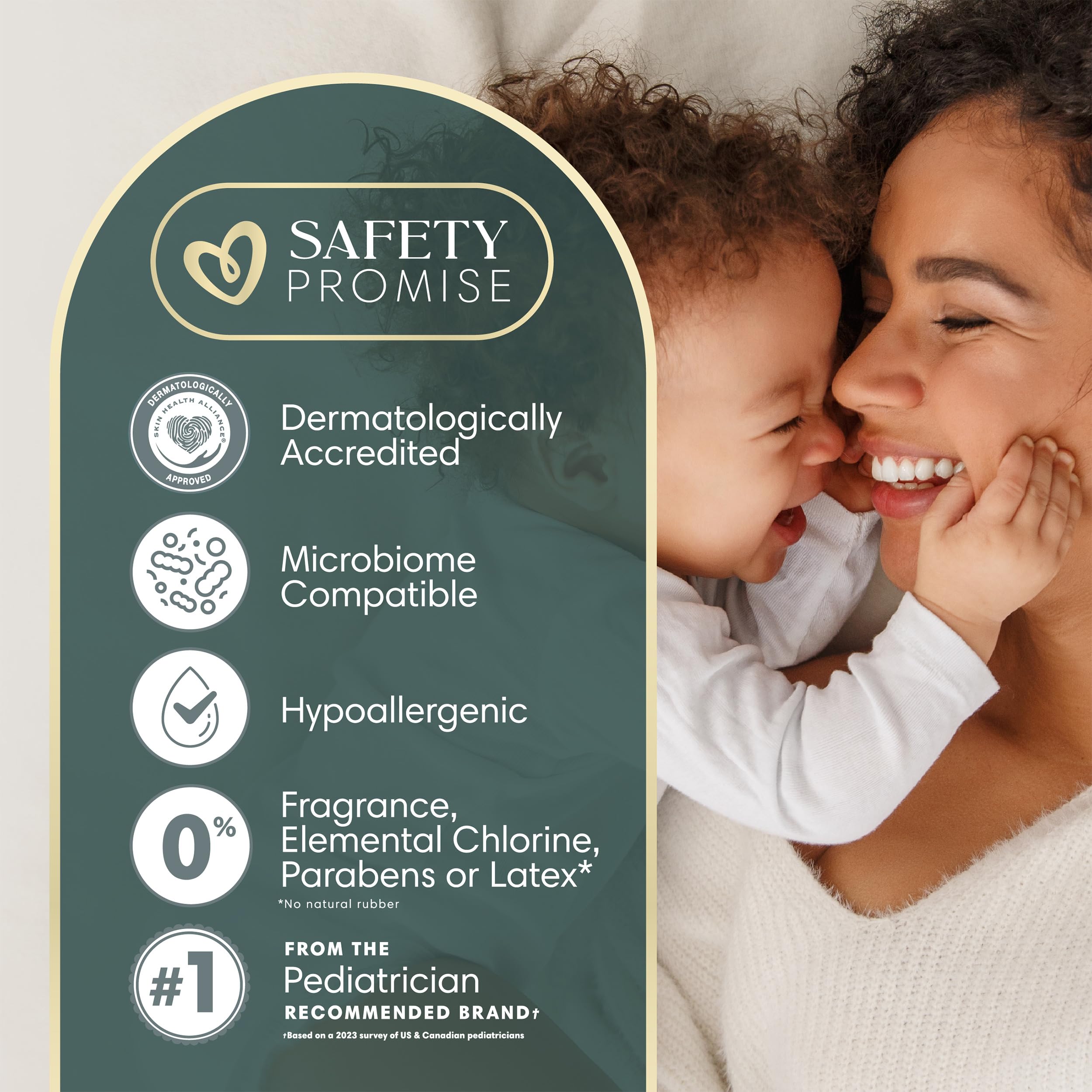 Hypoallergenic and tested for 1000+ Harmful Chemicals*. (*See pampers.com/en-us/product/Amore for more information.)