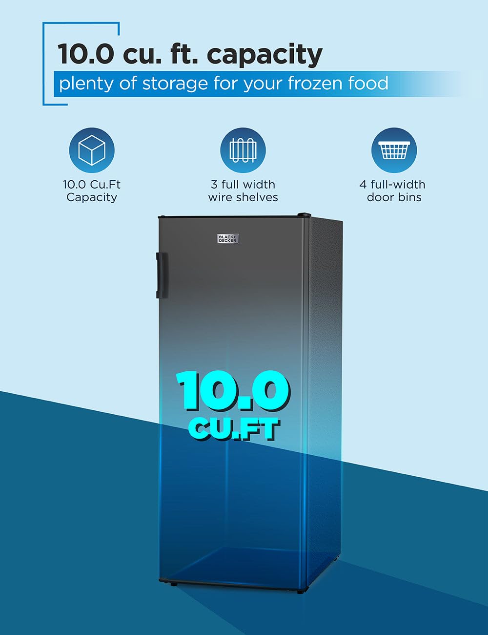 Spacious 10 Cu. Ft. Capacity: This garage freezer offers ample space to store all your frozen foods, including meat and bulk items. An ideal freezer upright for families requiring extra storage