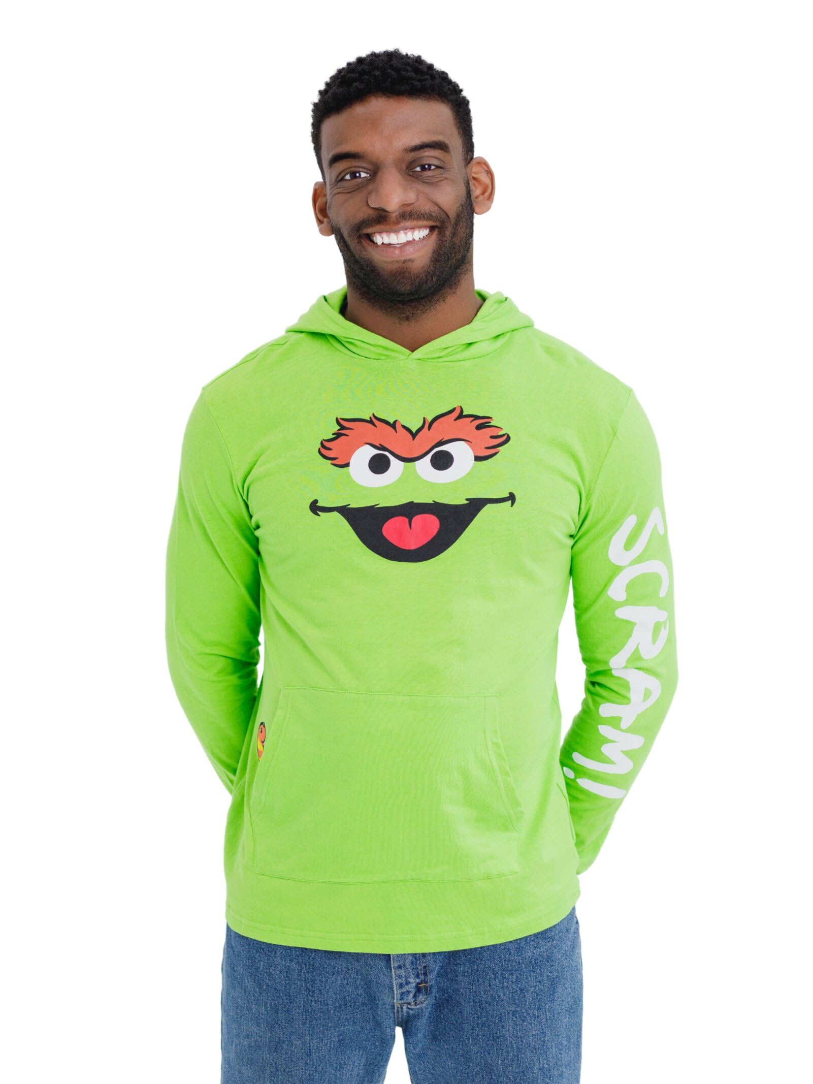 Officially licensed Sesame Street Oscar the Grouch men's long sleeve graphic tee shirt