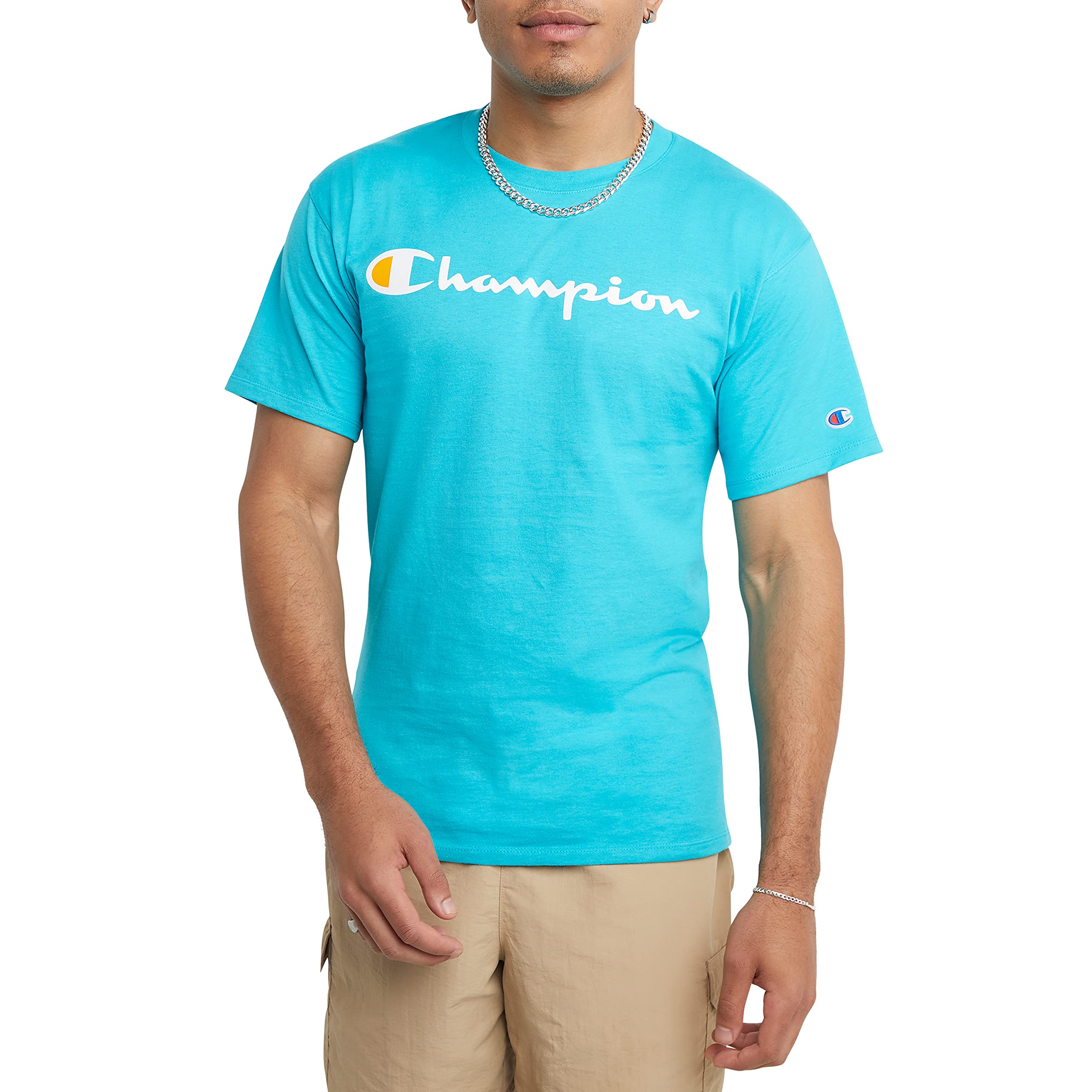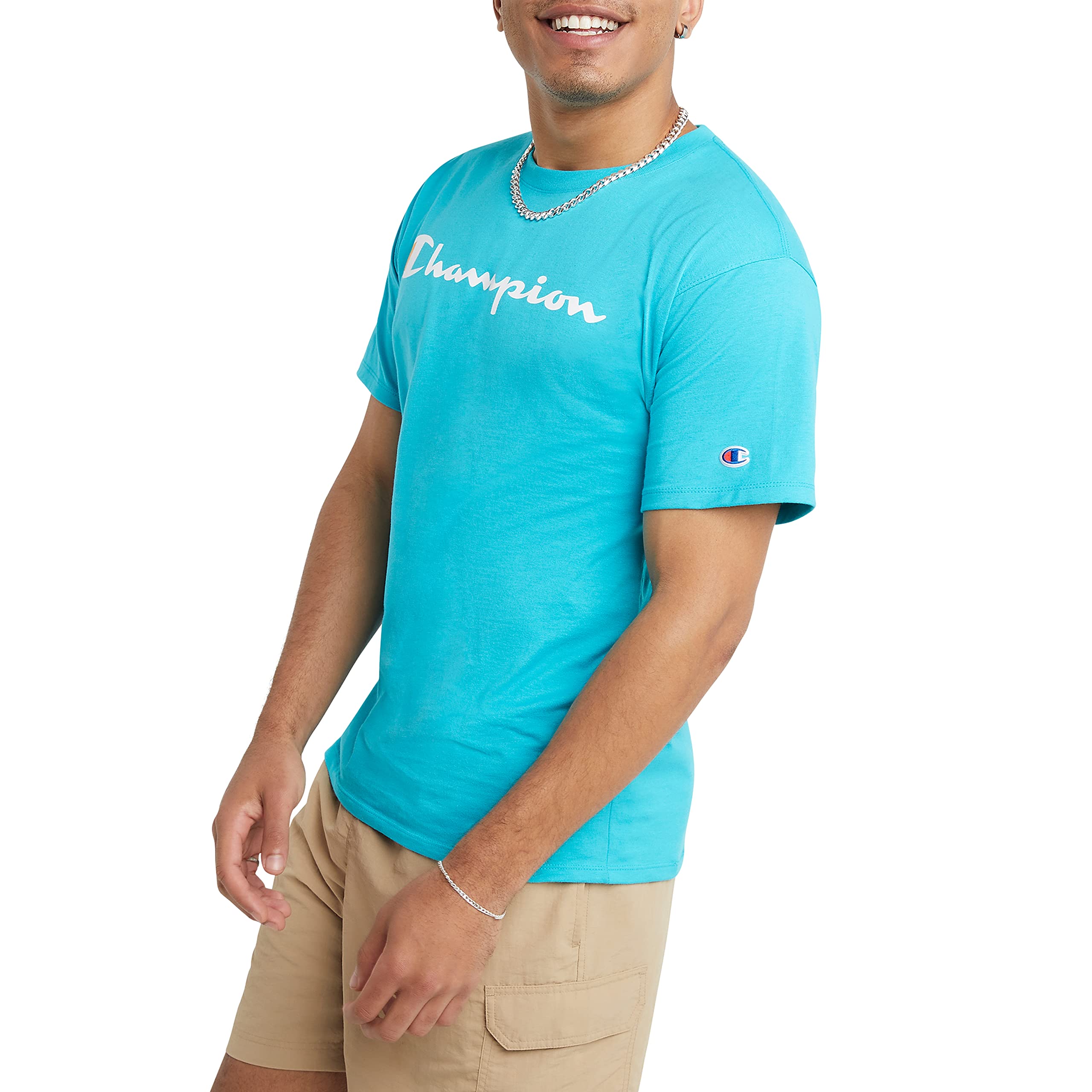 Description ALL-STAR STYLE. Outshine the competition with star graphics that bring the style. With unmatched comfort and softness, our graphic T-shirt for men is your best companion, from sport to street. Crafted with attention to detail and built to be a longtime favorite, it has a ribbed collar and sturdy stitchwork. Iconic C logo hits at the sleeve, showing everyone what you’re all about. Pair this men’s T-shirt with your favorite Champion joggers and shorts for a rounded out sporty look that can’t go wrong.