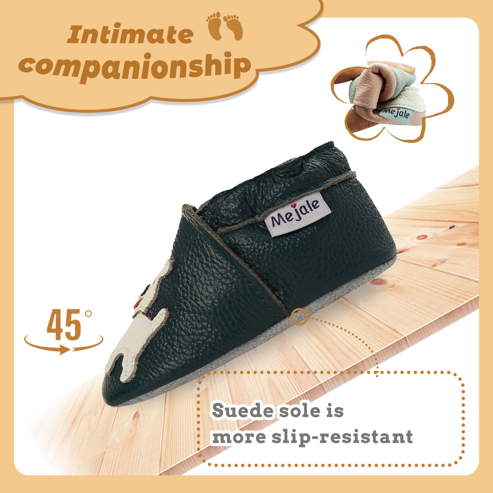 β₯Made of genuine soft Leather, slip-on shoes with elastic ankle, great shoes between a sock and a shoe for beginning crawlers and walkers. The moccasins soft leather can protect the baby's feet and enable them to learn to walk in a positive and natural manner