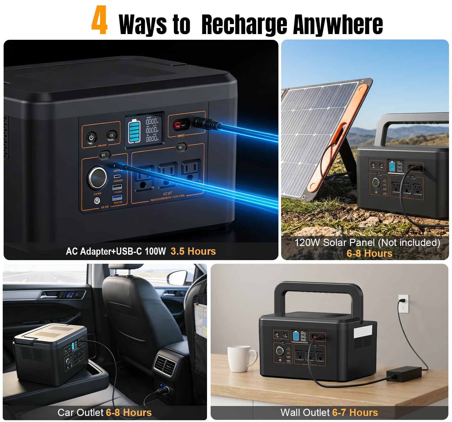 【3.5 Hour Fast Charging】 With advanced fast-charging technology, it only takes 3.5 hours for wall charging and USB-C 100W port to fully charge your solar generator, and 6-8 hours with 120w solar charging, saving time for your next adventure.