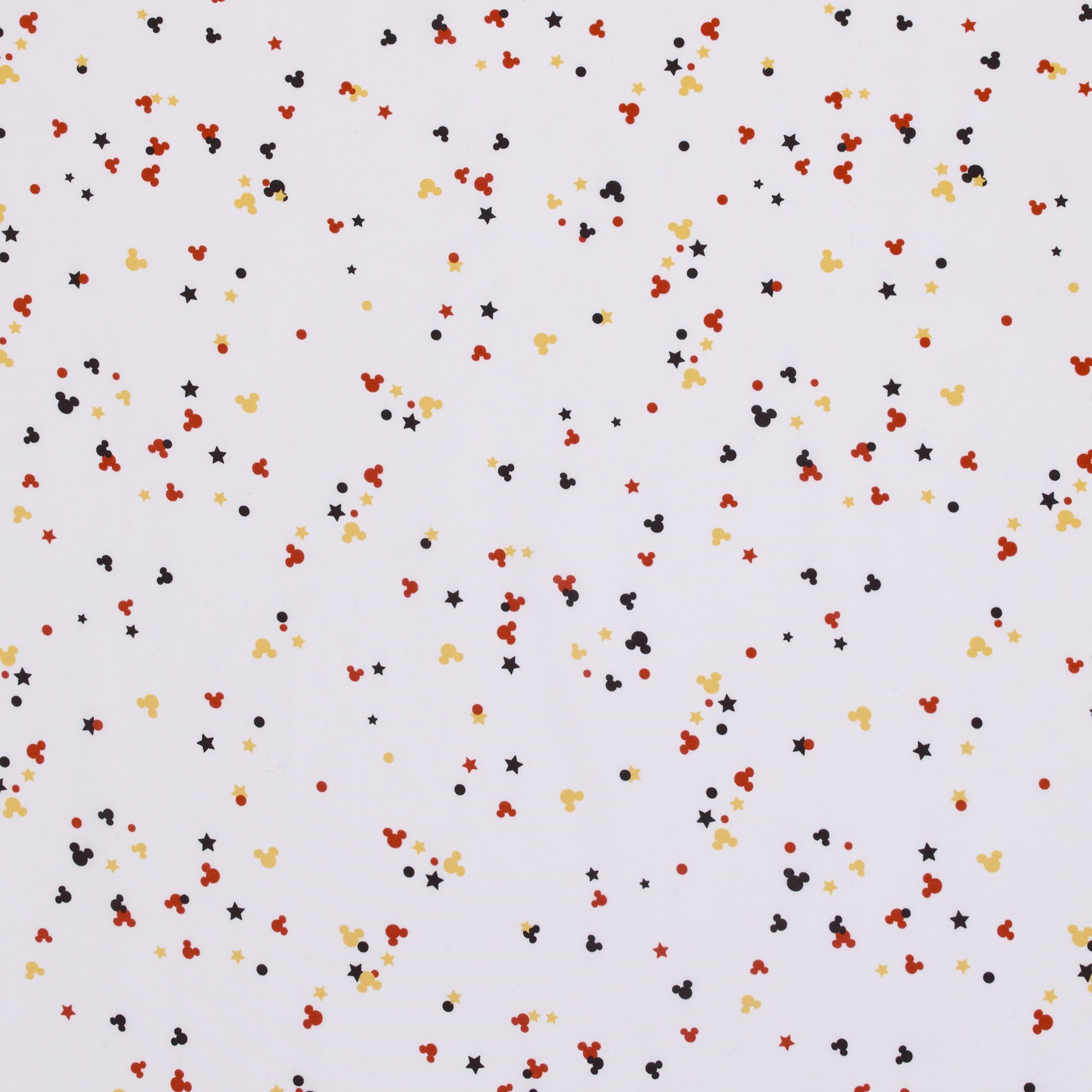 Features red, yellow and black Mickey Mouse confetti shapes on a white sheet