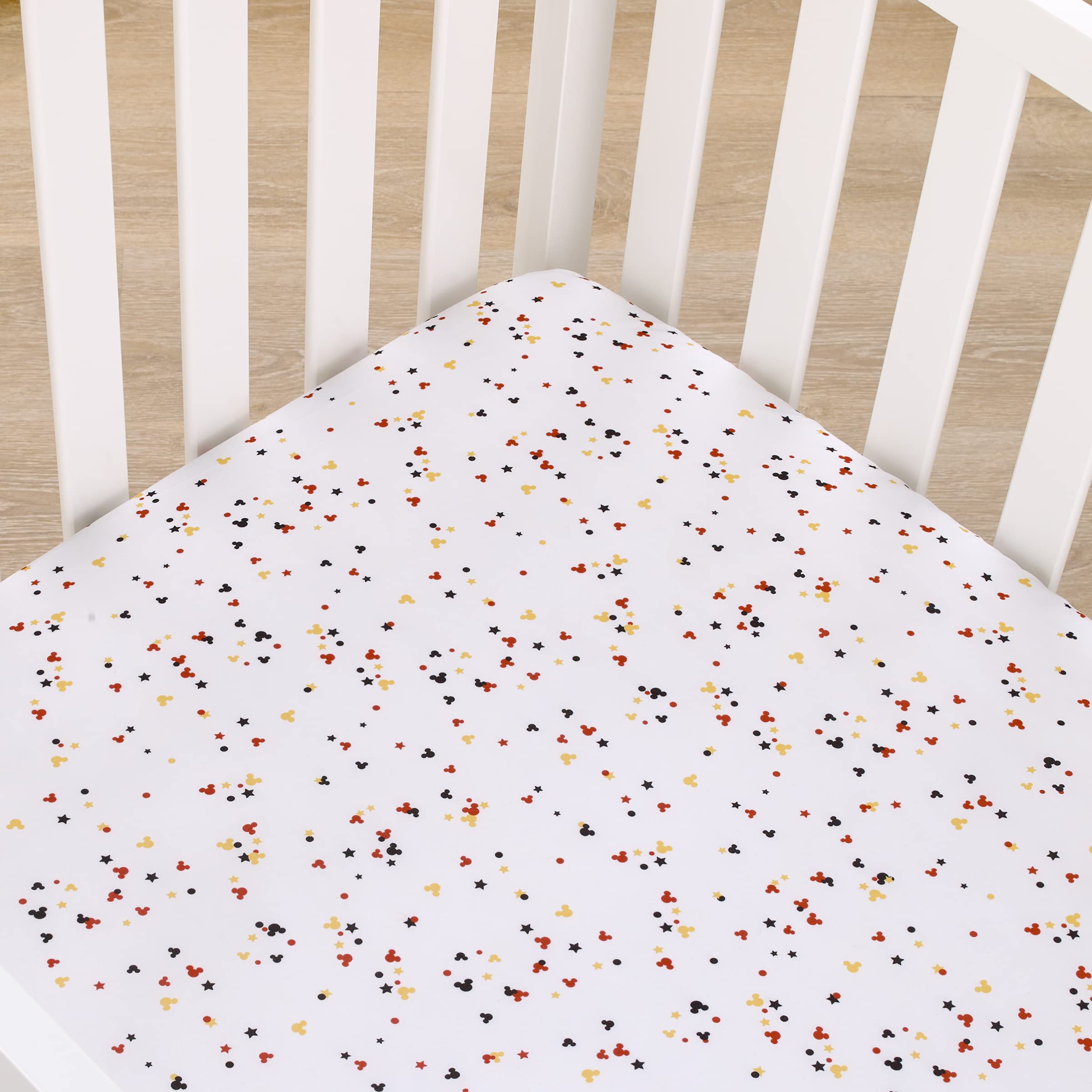 Disney Mickey Mouse - Red, Yellow, Black and White Mickey Confetti Nursery Fitted Crib Sheet