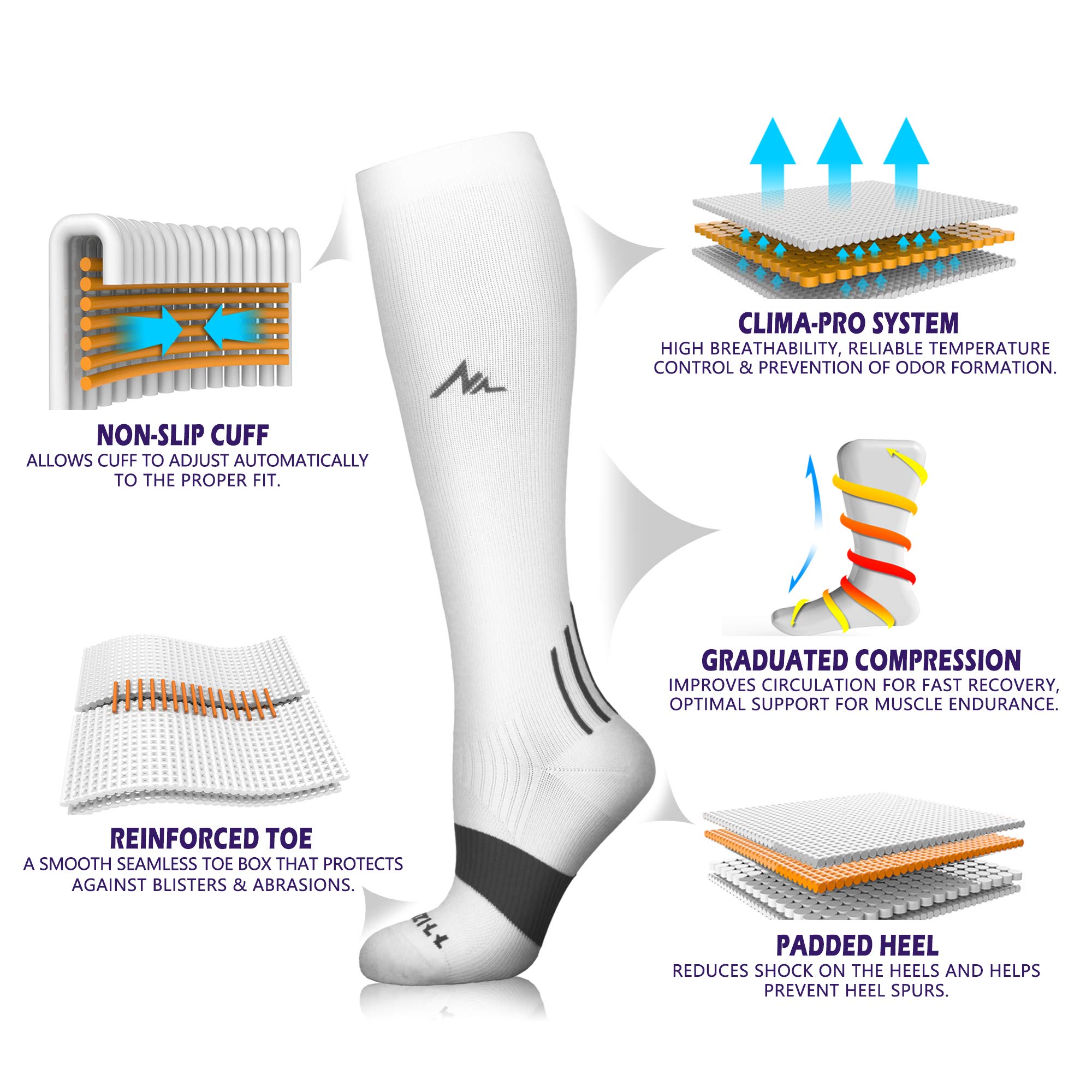 【IDEAL COMPRESSION SOCKS FOR ALL OCCASIONS】Our compression socks cater to a diverse range of needs from running nursing and traveling to sports like volleyball and basketball They also provide support for medical professionals pregnant women and individuals seeking comfort during travel or maternity With high-performance features our socks offer support and relief for both men and women across various occasions