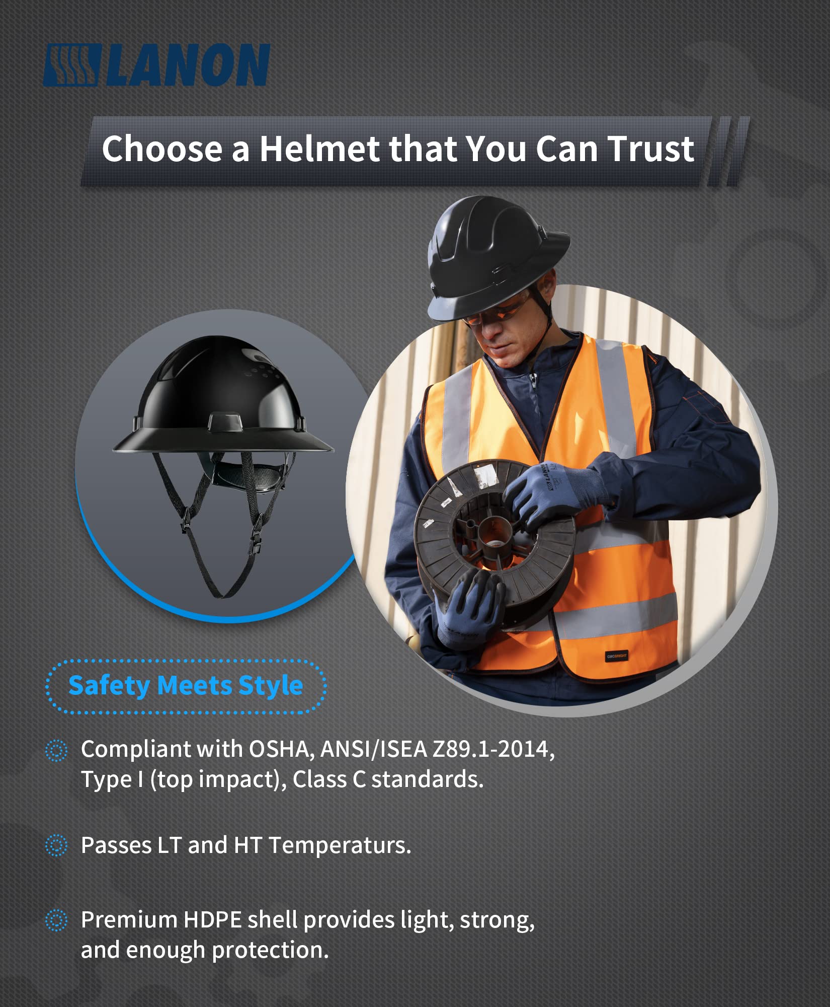 Superior Quality: Our durable construction helmet for men and women are fully compliant with OSHA, ANSI/ISEA Z89.1-2014, Type I (top impact), Class E, G & C standards.