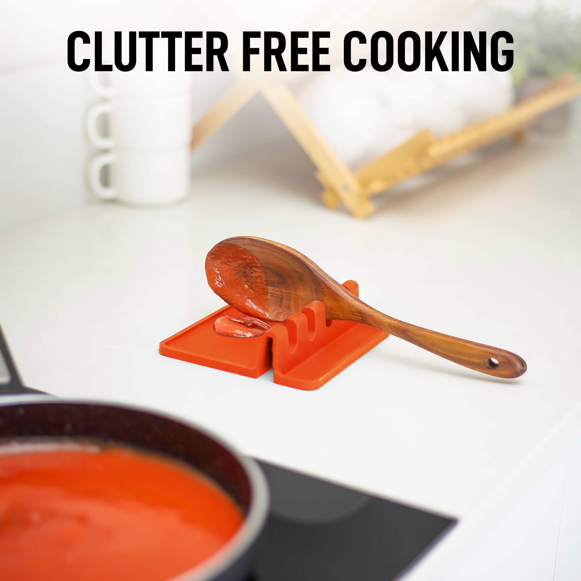 HEAT RESISTANT AND EASY TO CLEAN: Made from food-grade material, this silicone spoon rest can be placed near the stove or countertop without it being affected by heat. It is designed with a non-slip base to prevent it from sliding and causing chaos while cooking. Once you are done with cooking, toss the kitchen tool holder in the dishwasher for a quick cleanup.