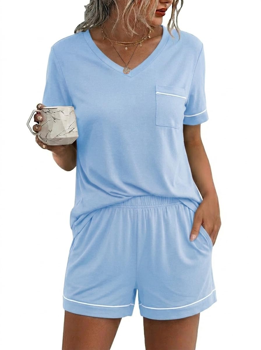 【Thoughtful Design】 The pjs top features a V Neck, chest pocket, and contrast Hasselblad trim; the lounge shorts include side pockets and matching piping for a polished, relaxed look
