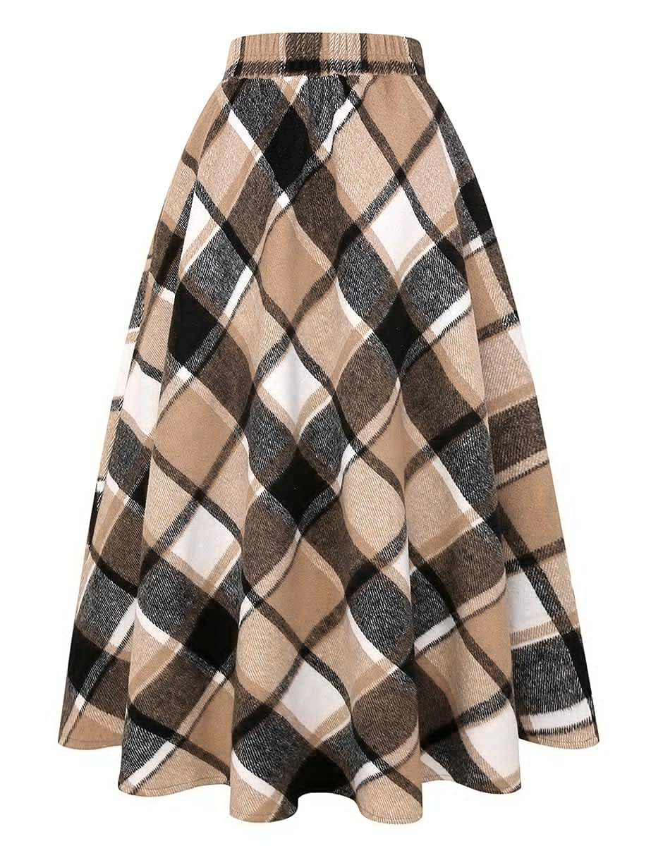 Womens fall/winter vintage classic plaid aline maxi flared tartan mid-long wool skirts