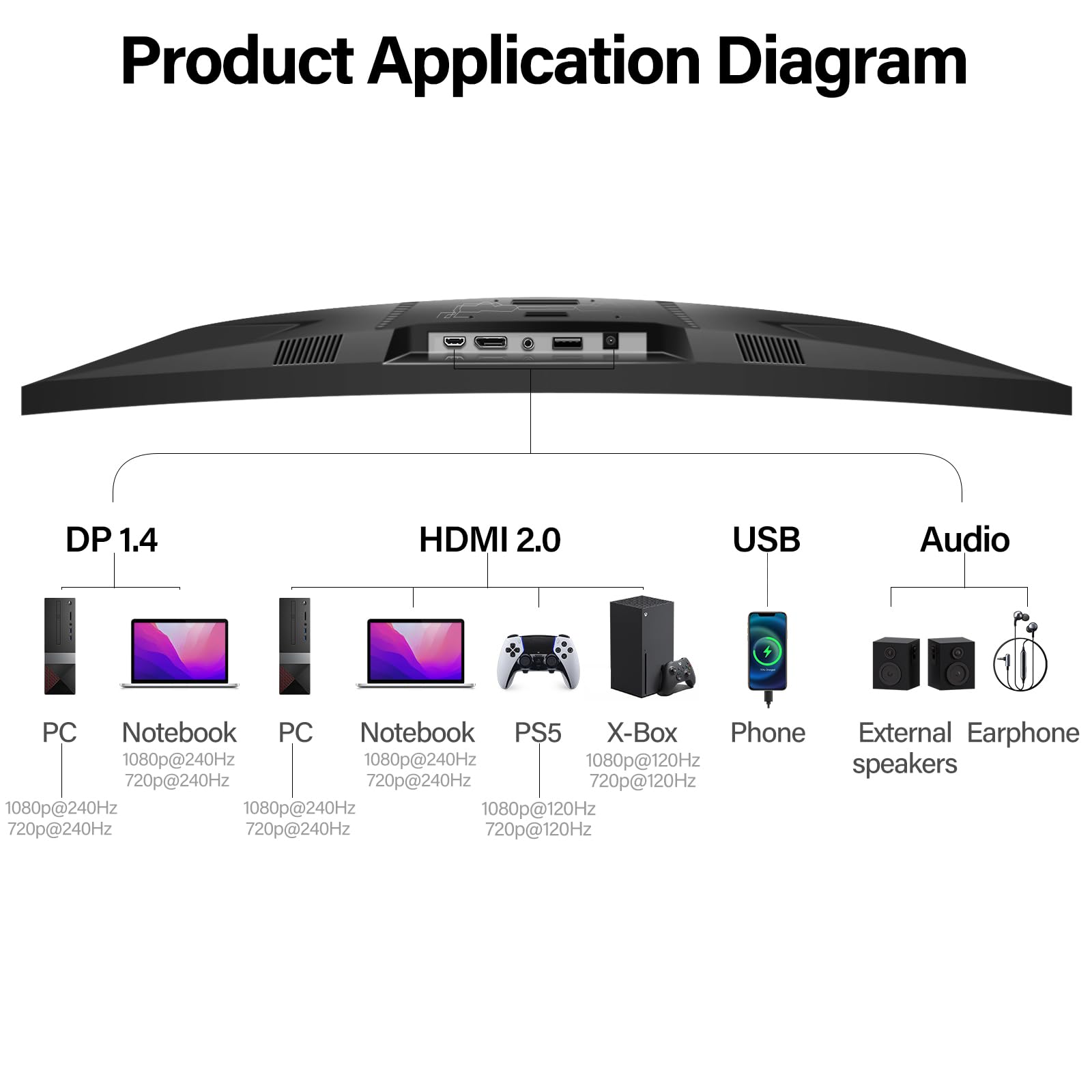 Flexible Connectivity - Gawfolk Curved Gaming Monitor supports video interfaces via DisplayPort (up to 240 Hz) and HDMI (up to 120 Hz) ports. You can connect it to your game console, PC or laptop. Tilt angle adjustment from -5° to 10° and VESA 100*100 mm support for comfortable relaxing or working in an optimal position. Provides you with a pleasant office and gaming experience.