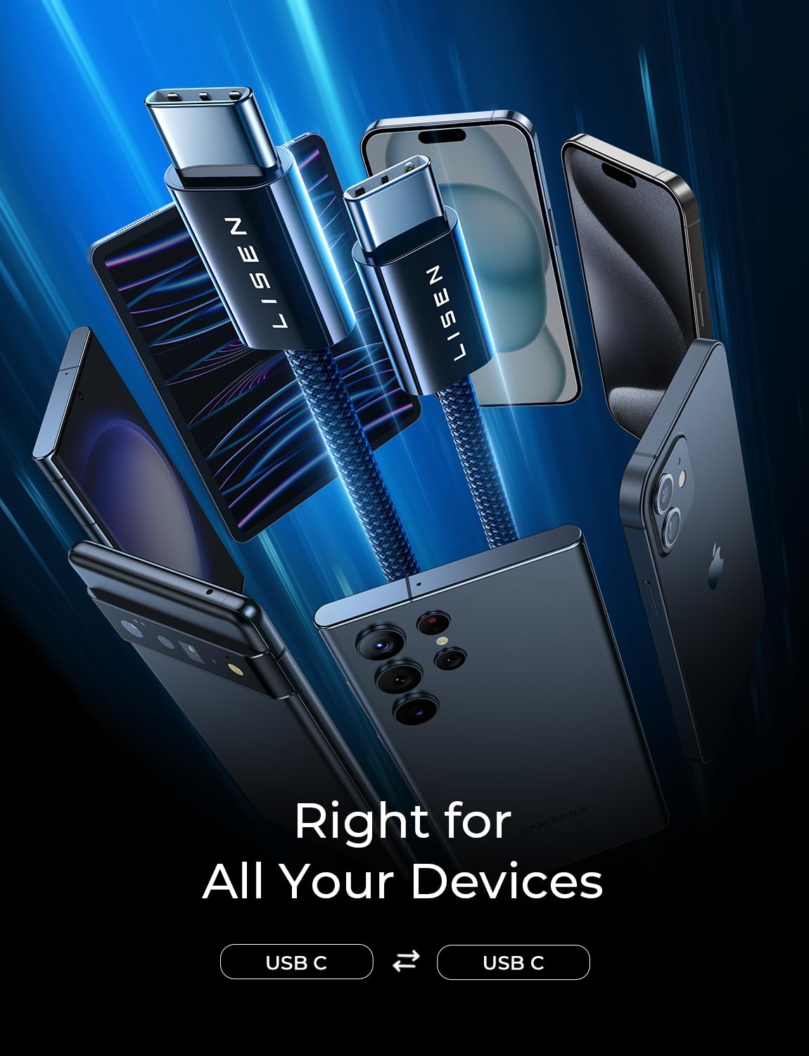 【Right for ALL Your Devices】This is the USB-C to USB-C cable Not the USB-C to USB-A cable, Compatible with virtually all USB-C devices including phones, tablets, and laptops. Such as Samsung Galaxy S23/S22/S21+/S21/S20/ S20+/ S20 Ultra/ Note 10, MacBook Air/Pro 13'', iPad Mini 6, iPad Pro 2021/2020/2018, iPad Air 2020 and more.