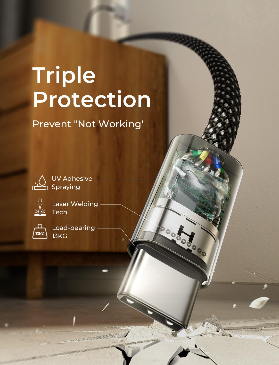 【Triple Protection USB C Port】USB to USB C Cable has electronic safety certifications that comply with appropriate standards, it built-in laser welding technology, which ensure the metal part won't break. The copper core part is reinforced with UV glue to prevent the solder joints from falling off. The USB C port pass Load-bearing 13KG test which longer service life and will never break.