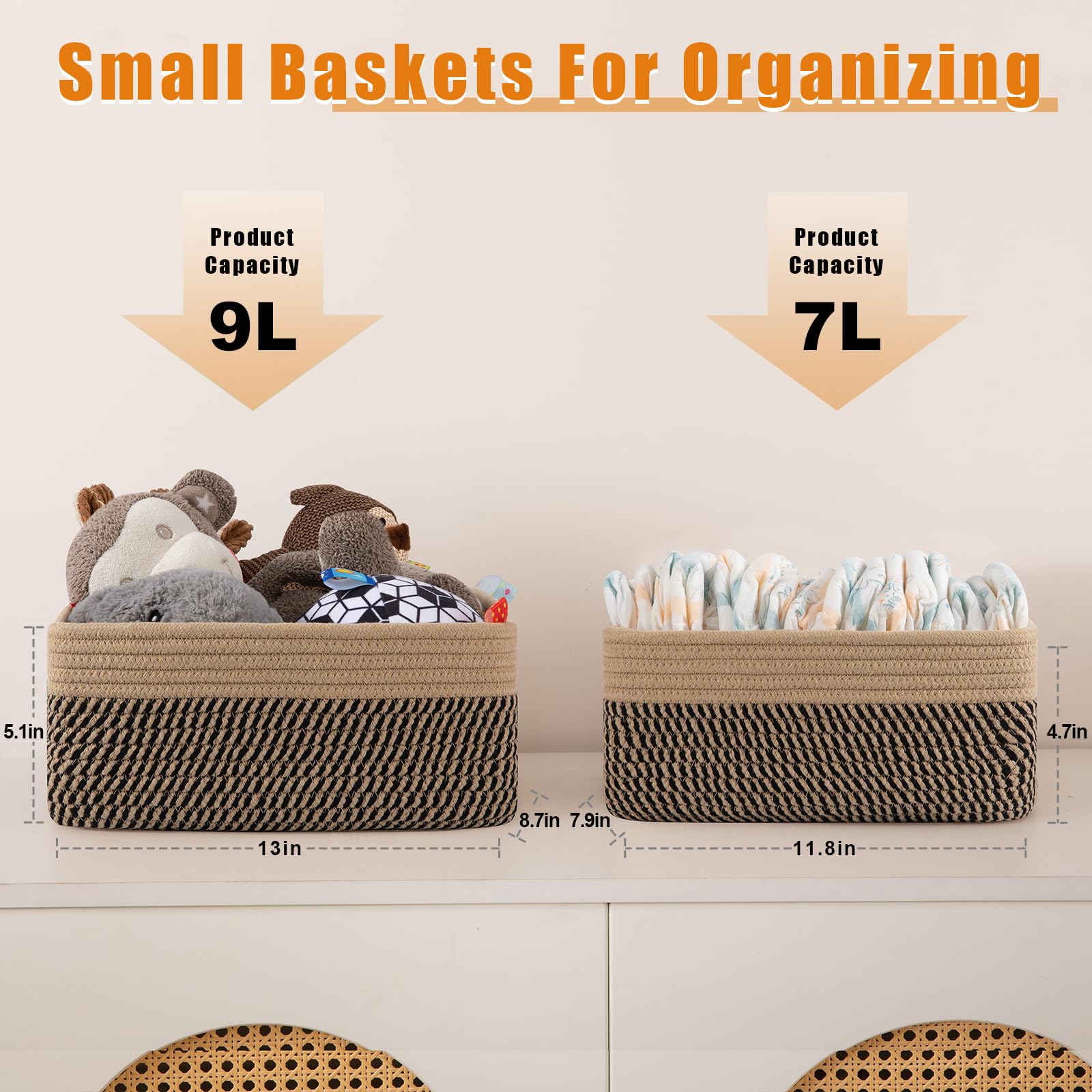 Mini Baskets for Shelves: These cute baskets measures 13” x8.7” x5.1”(all dimensions are measured manually with deviation), can be used in baby room, living room, bedroom, bathroom, office, or used with a closet, cabinet, shelving