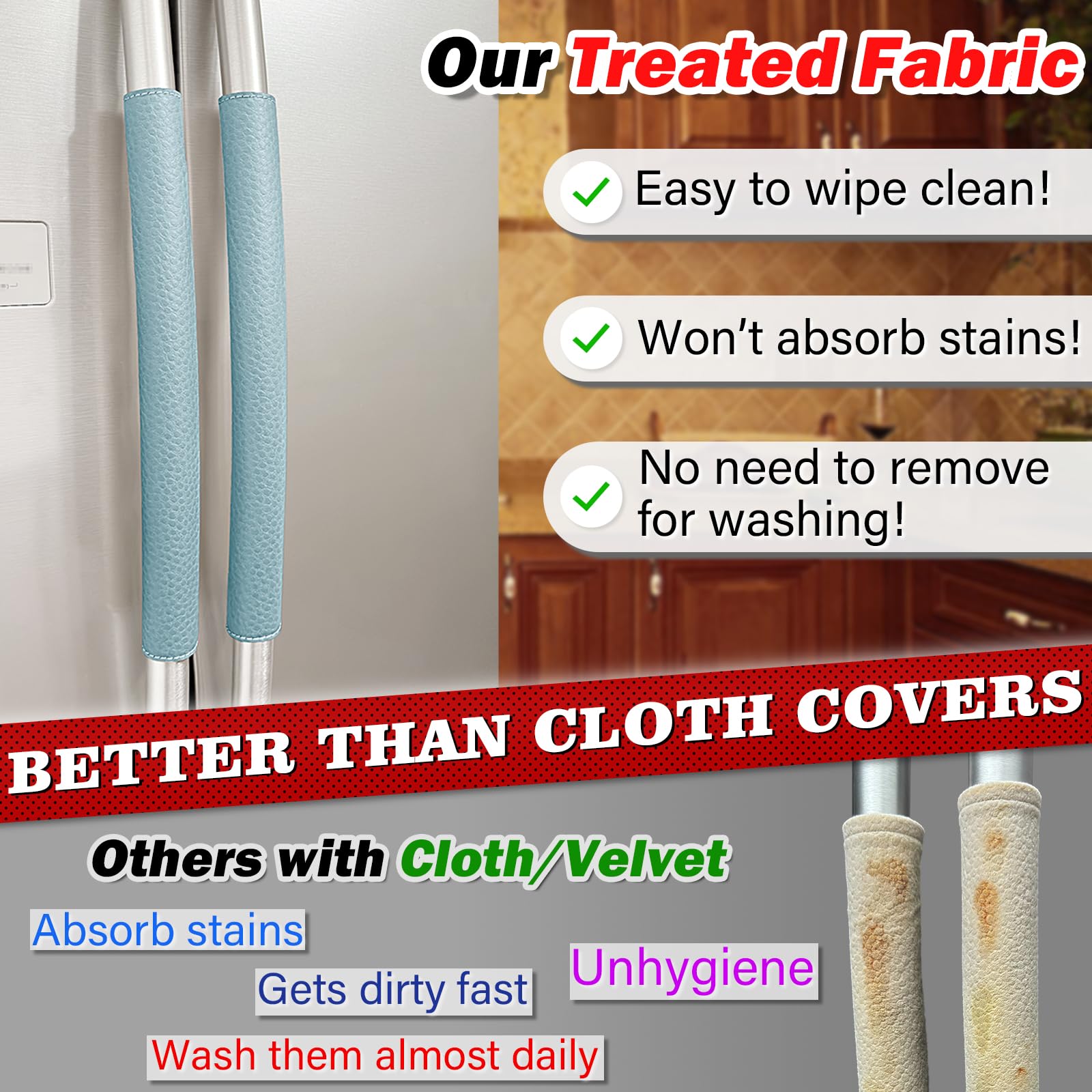 【BETTER THAN CLOTH COVERS】 - Rikzor fridge handle covers are made of treated fabric which doesn’t collect water, dirt, or stains. It can be easily wiped clean, which means you don't need to remove and wash it almost daily like velvet or cloth handle cover.