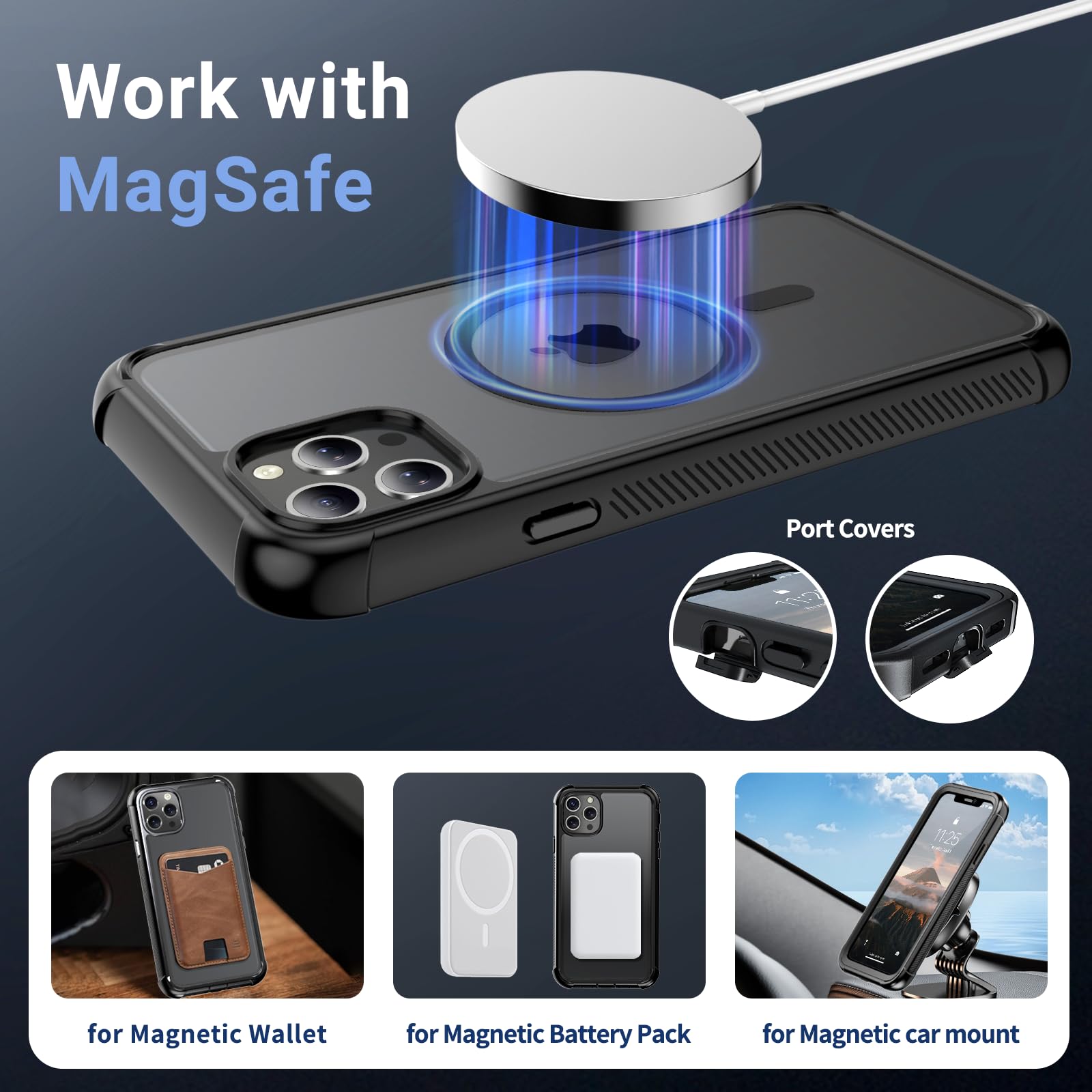 [Magnetic Craft] The built-in magnetic ring can strengthen the magnetic absorption, empowering the case to be compatible with wireless charger, magnetic car mount, magnetic battery bank, magnetic wallet, and most MagSafe accessories. The perfectly aligned magnets enable wireless charging faster and safer than ever. Wireless charge on with the case on.