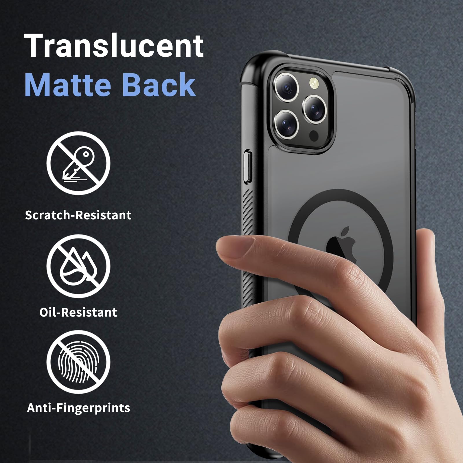 [Skin-Friendly] The back of the case is crafted with a skin-touch matte finish, which feels smooth and non-slip in your hand. Unlike glossy surfaces that attract fingerprints and smudges, this matte texture stays clean with minimal wiping, while its soft tactile sensation enhances holding comfort for long periods.