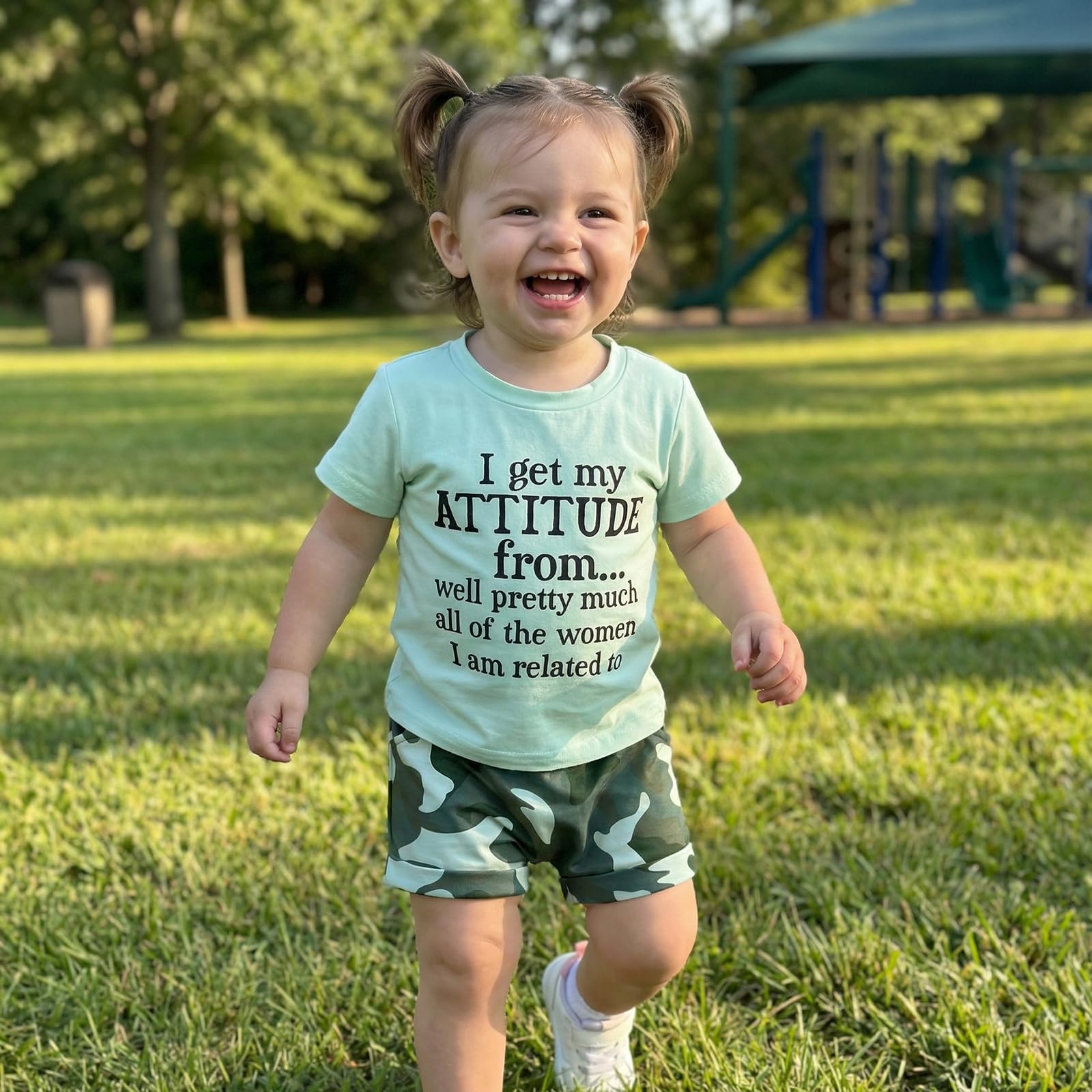 Design: Toddler kids girl clothes features fashion letter printed, short sleeve, crew neck, classic style t-shirt tops, camouflage short pants with pockets,very cute and cool clothes set for summer.