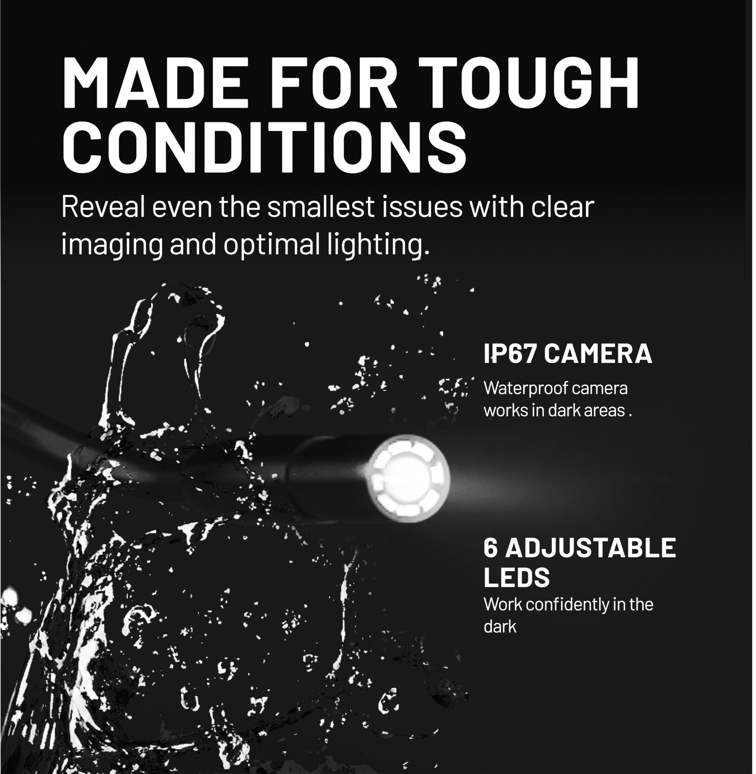 WATERPROOF LENS - With INNOVA 3380’s IP67-Rated Submersible Lens, this borescope inspection camera can inspect areas contaminated by oil or water. Built for more than automotive, easily inspect vents, ductwork, inside walls, plumbing, and more.