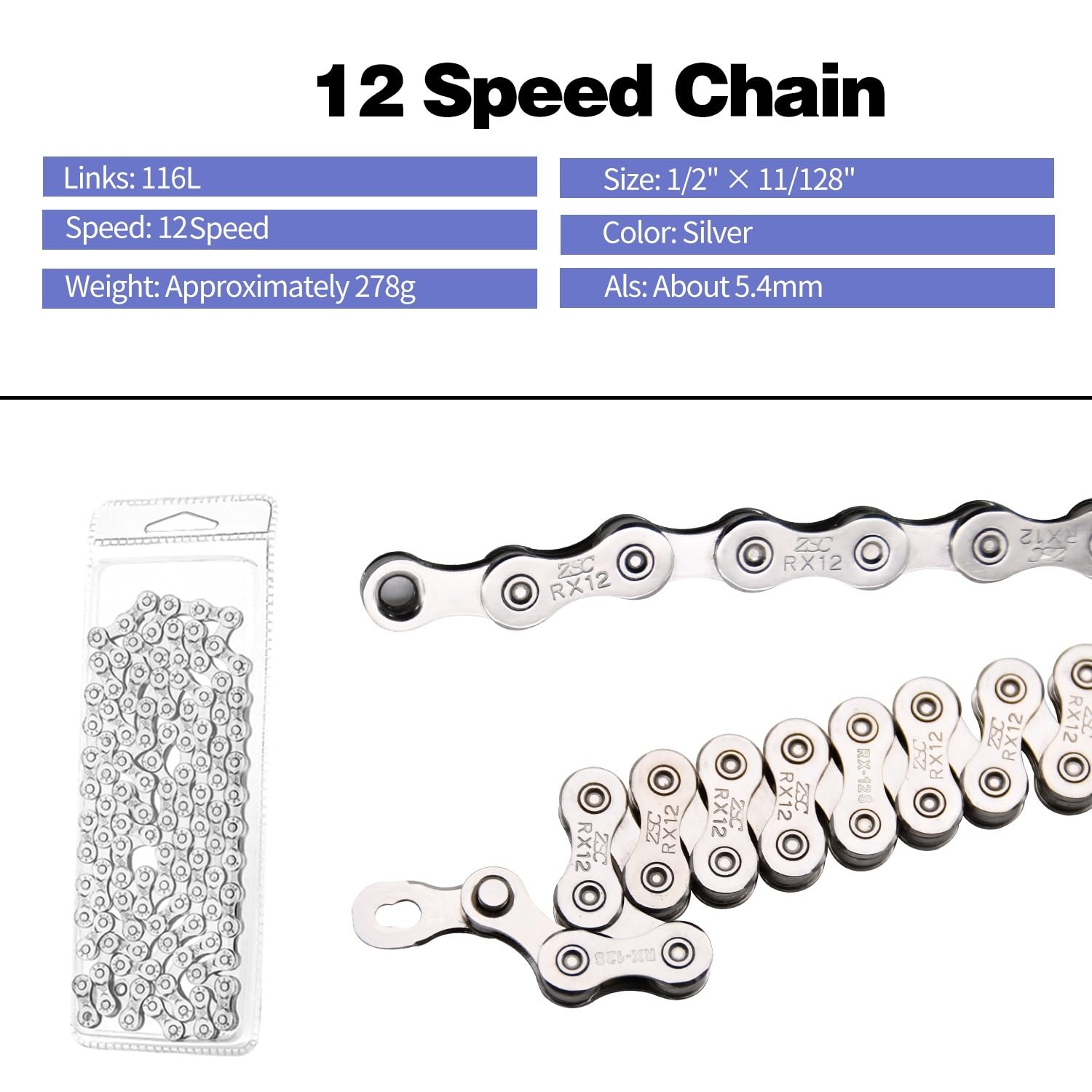 【High-quality Material】- Our bike chains are made of special forging steel which is repeated forged and strict controlled of materials to ensure the strength. The are full plating silver to anti-rust, high cost performance, anti-corrosion, wear-resistant and durable.