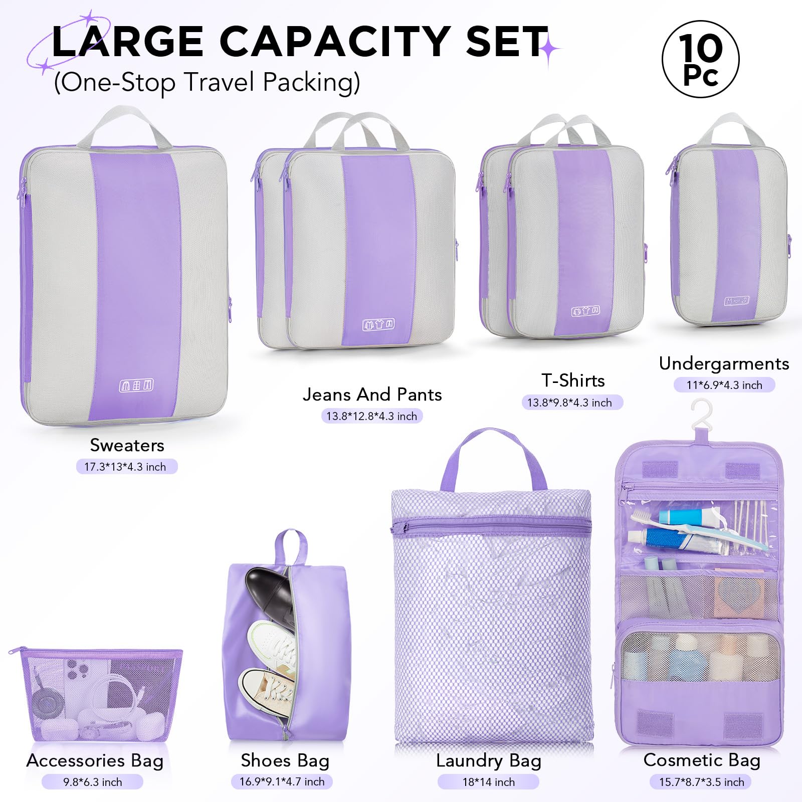 Ready for Any Adventure - Whether you’re heading out for a weekend getaway, a business conference, or a month-long backpacking trip, This high-capacity 10-piece compression cet seamlessly accommodates 20-32-inch suitcases of all types. We’re here to ensure you travel smarter, pack better, and enjoy every moment of your journey with peace of mind.