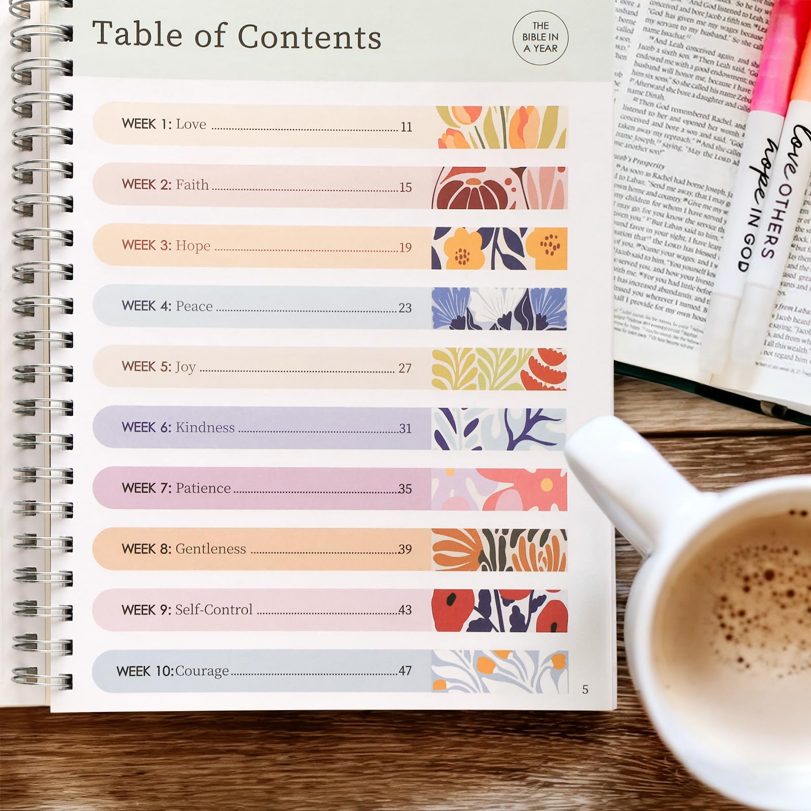 Spiral Binding & Note-Taking Space: Perfect for women seeking an interactive study experience, this workbook features a convenient spiral binding for easy lay-flat use and ample note-taking space to jot down insights, prayers, and personal applications. Track your spiritual journey, record "aha!" moments, and revisit your growth throughout the year—a tangible keepsake of your walk with God.