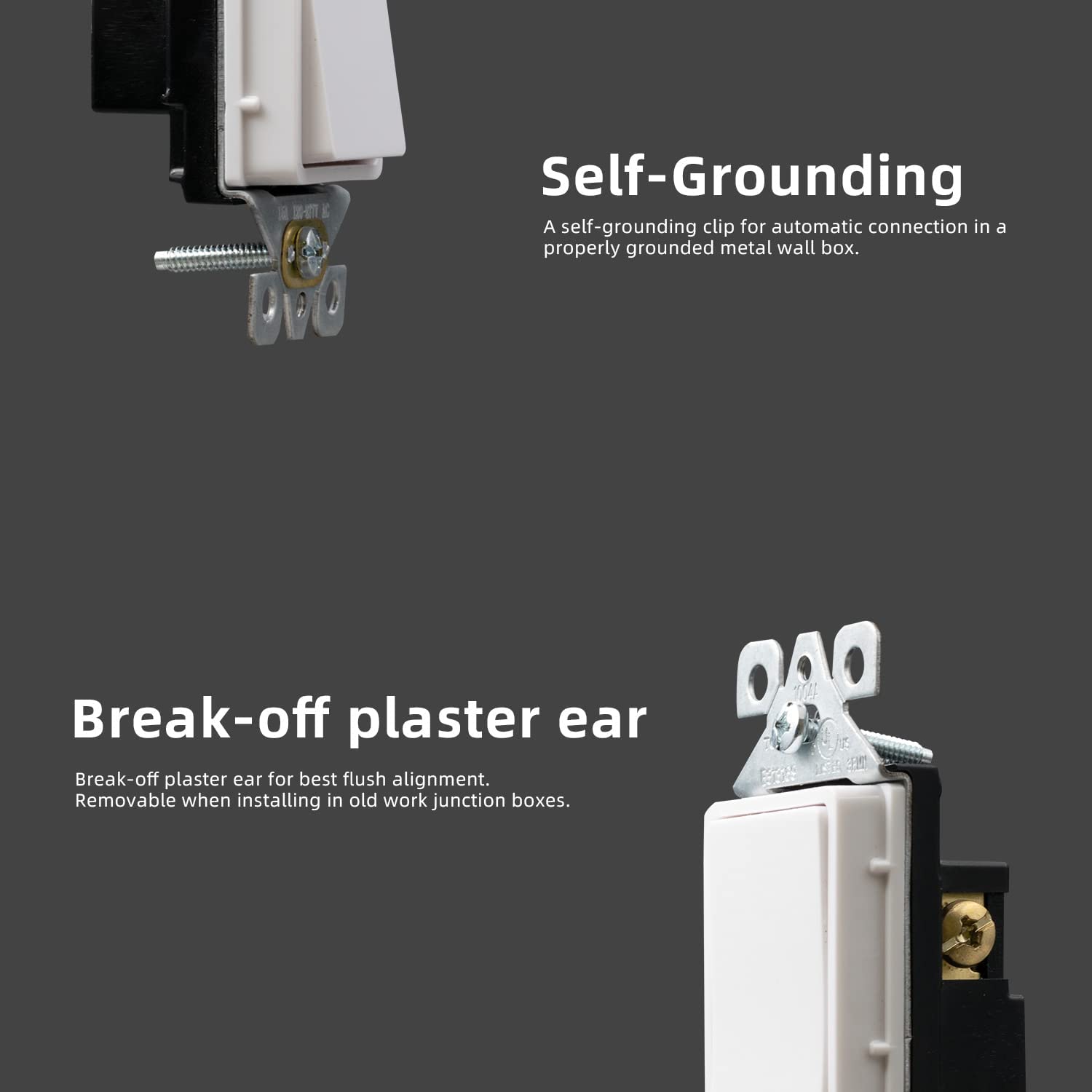 ✅【Self-Grounding】Designed with a self-grounding clip for automatic connection in a properly grounded metal wall box.