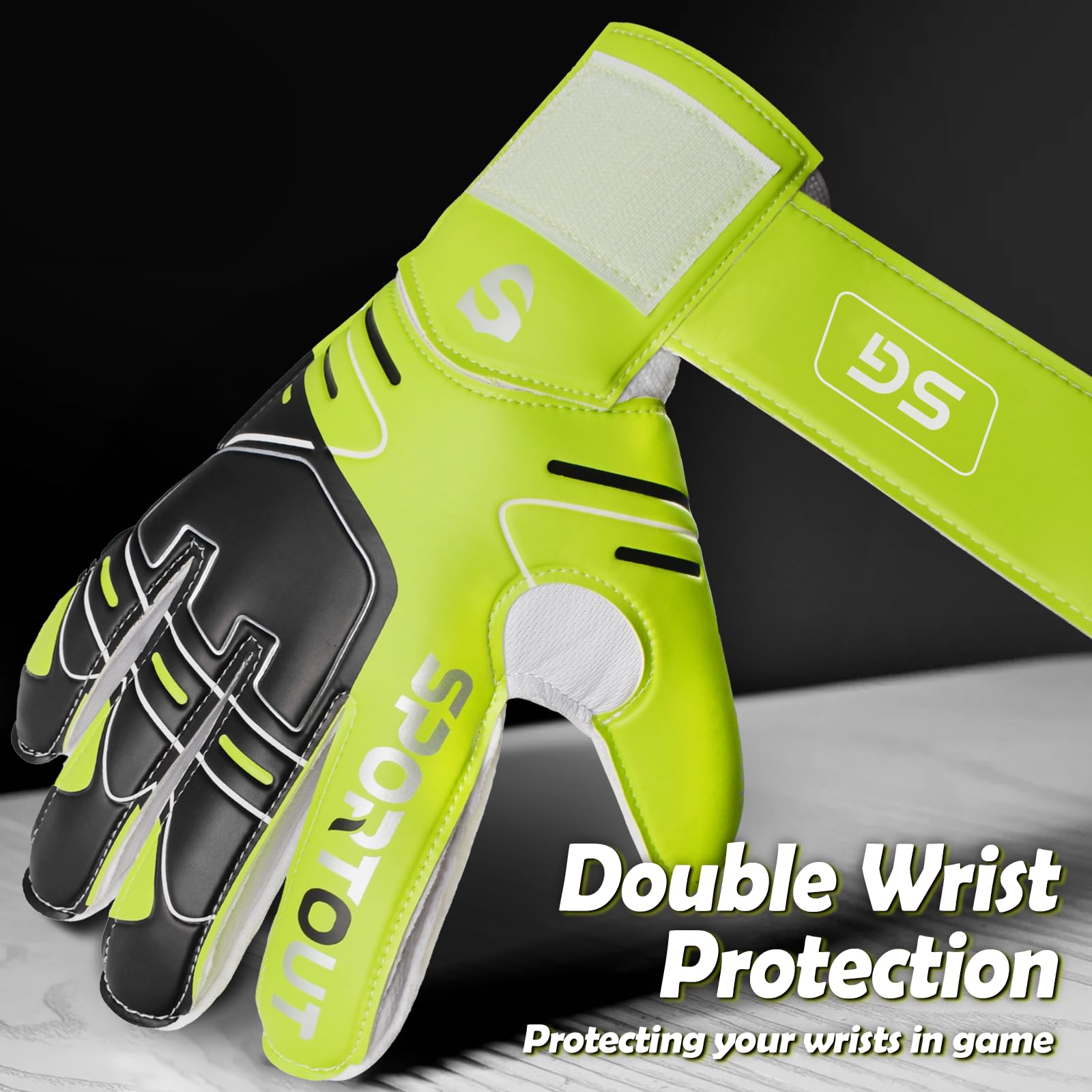 DOUBLE WRIST SAFEGUARD:- These soccer gloves have a double-designed wristband whose lining layer is elastic stuff and the outer is close-fitting velcro bandage with stretch-strap, so they can contract your wrist muscles better and offer more secure protection to reduce the sprained wrist risk.