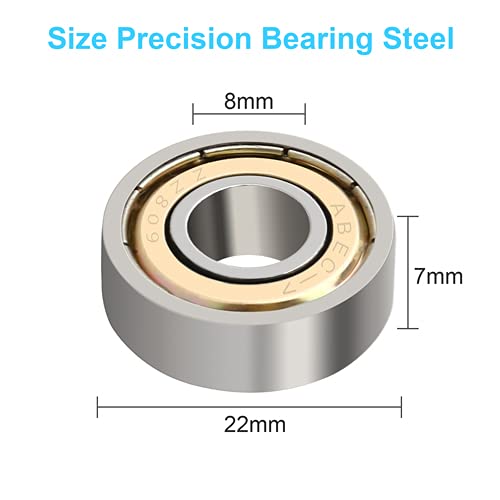 608 ZZ Ball Bearings, Skate Bearings Double Shielded Miniature Ball Bearings for Skateboards, Inline Skates, Scooters ABEC 7 Bearing (8mm x 22mm x 7mm) 4PCS