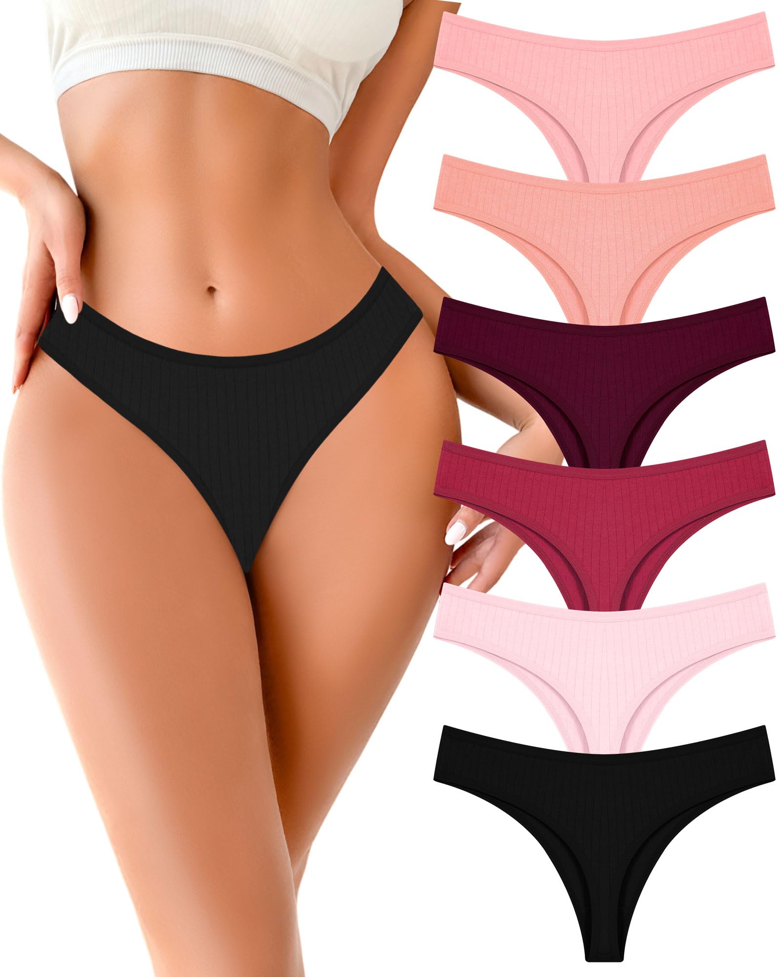 Thongs for Women 6 Pack: You can get 6 thongs of different colors for less than a hamburger. It can bring you a happy week and make it easier to match your yoga pants, skinny jeans, sports legging, skirts, shorts, etc.