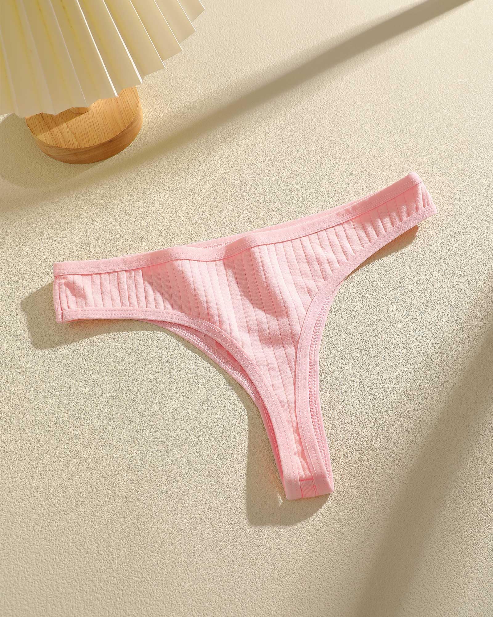Cotton Thongs for Women: 95% premium cotton, 5% spandex. Crotch inner lining: 100% cotton. Comfortable and breathable fabric with ribbed texture is more lovely and cute.
