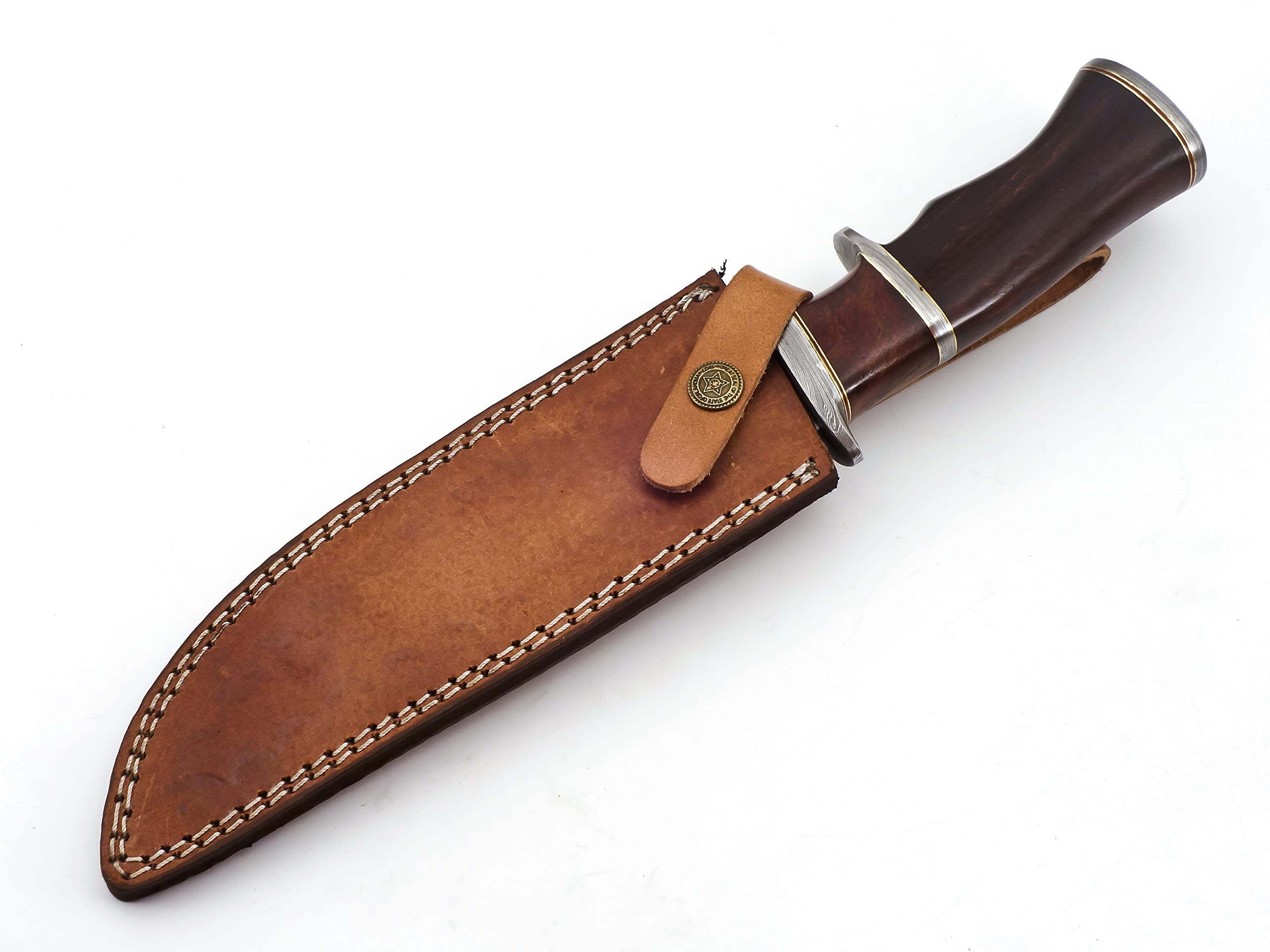 HAND FORGED AND ARTISTICALLY ENGINEERED: This camping knife is carefully hand-polished and features a military-grade handle made using Rosewood. These tactical knives have excellent strength and can retain an edge while cutting, chopping, piercing, or throwing on most surfaces
