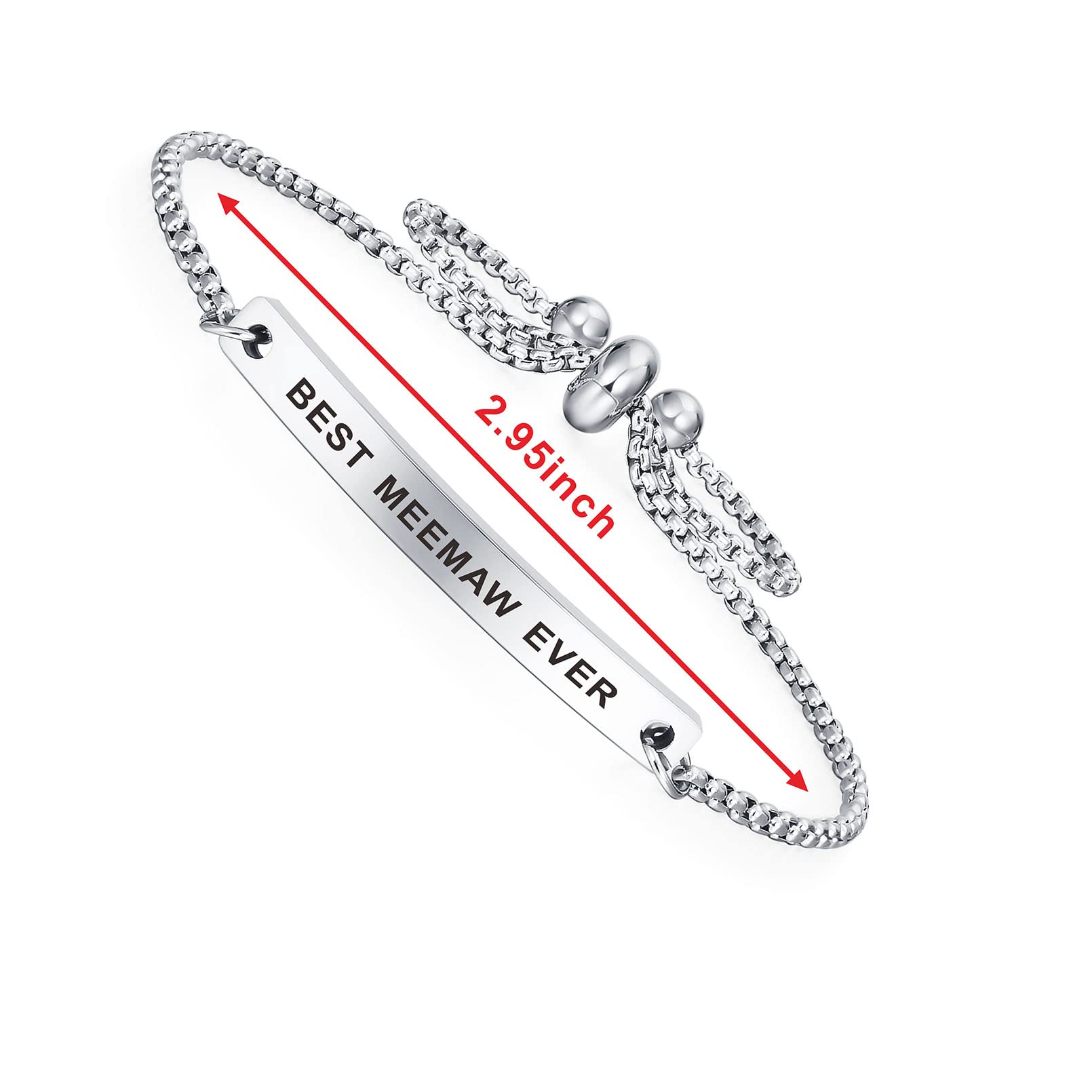 Meemaw Steel Bracelet - Made with Stainless Steel and link,lead free and tarnish resistant, will not change color. Adjustable bracelet diameter: 2.7 to 2.95 inches, Size of steel plate: 1.5*0.2 inch.
