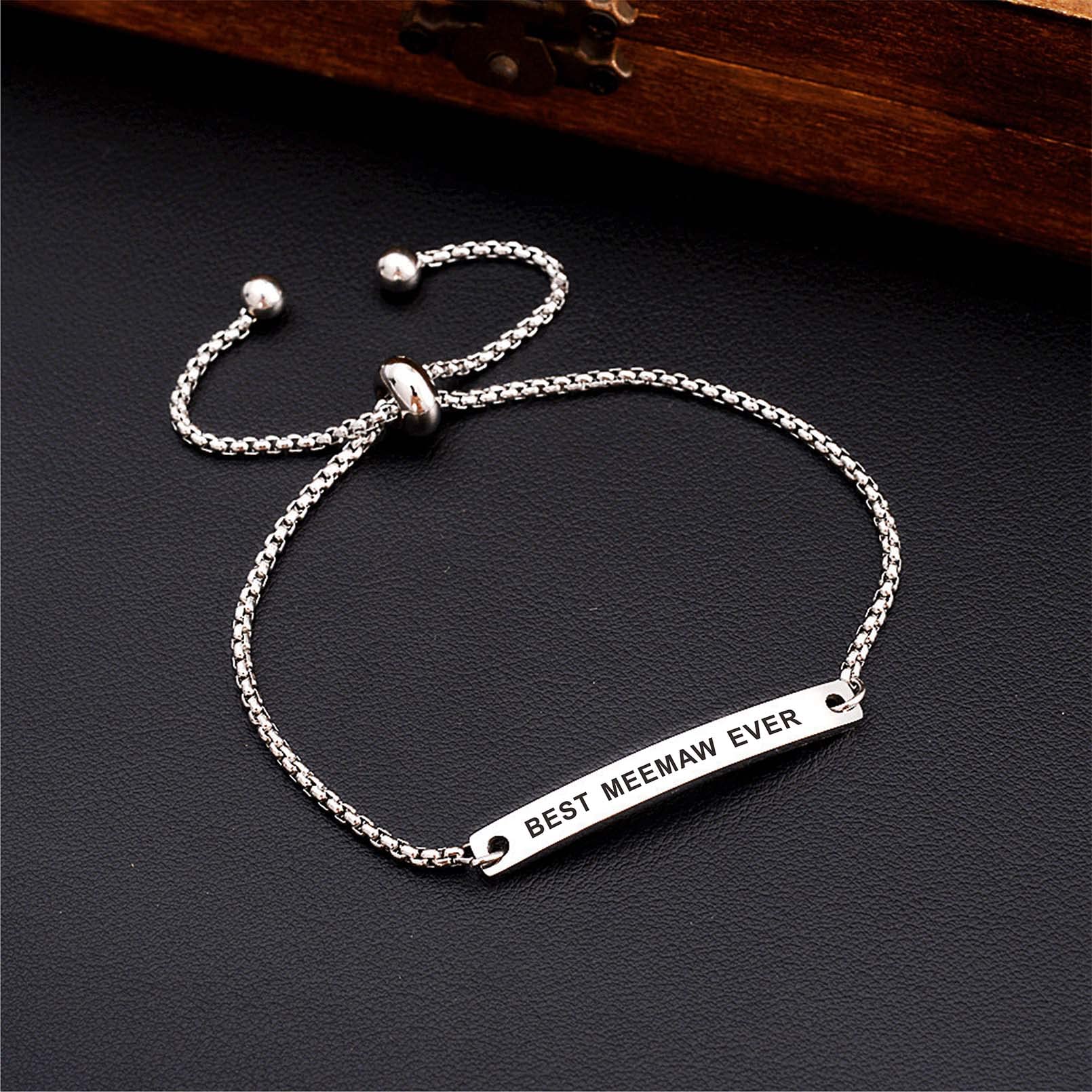 Personalized Bracelet for Meemaw - A fashion present for meemaw on birthday, Mother's Day, Halloween, Thanksgiving, Christmas, Valentines Day, wedding day or just send as a surprise gift for meemaw to let her know you care about her. Meaningful presents for meemaw on any occasions