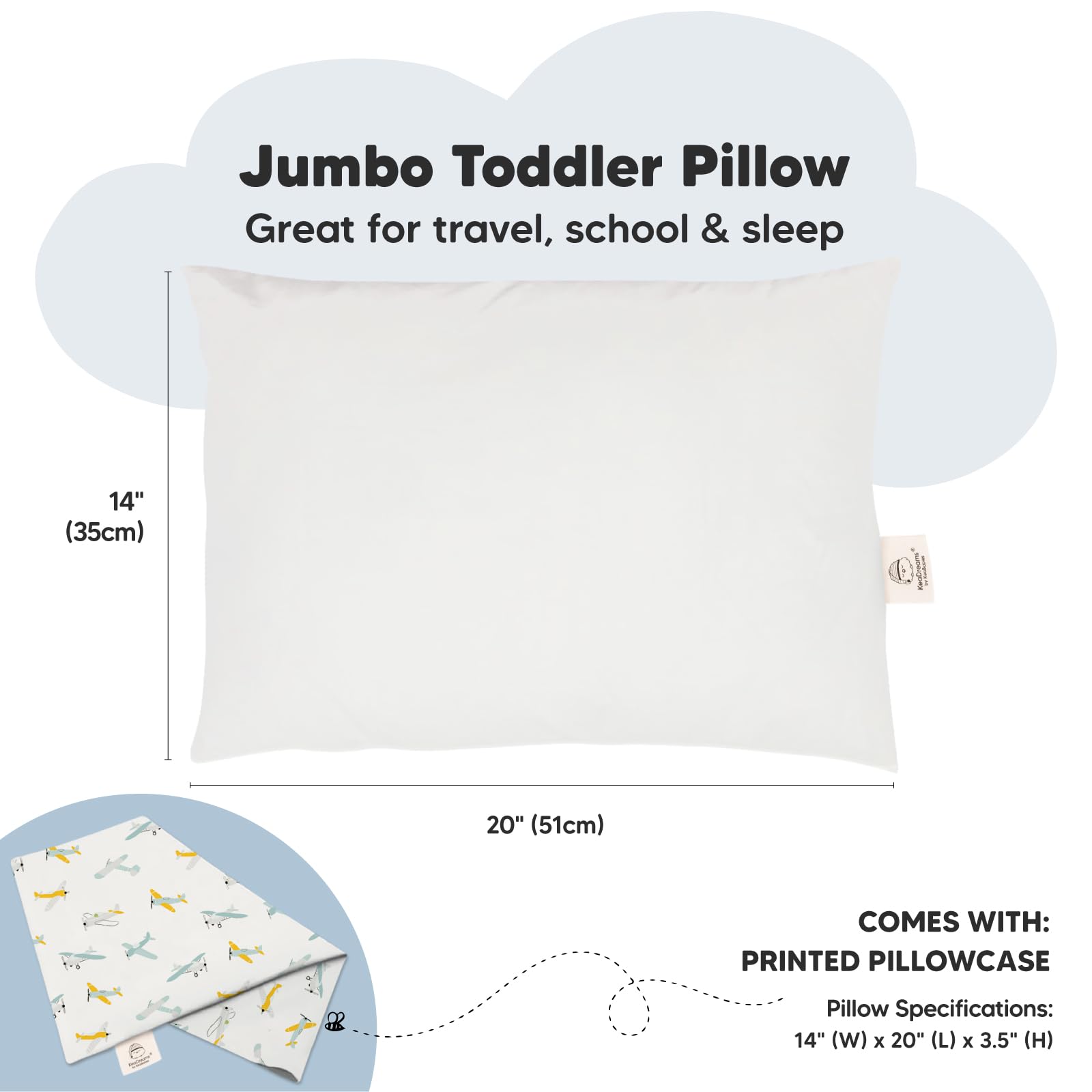 Ergonomically Designed – KeaBabies Jumbo Toddler Pillow 14x20, offers ergonomic support for healthy spinal alignment and all-night comfort. Note: Simply cold wash and tumble dry low to restore its fluffiness after opening from vacuum package.