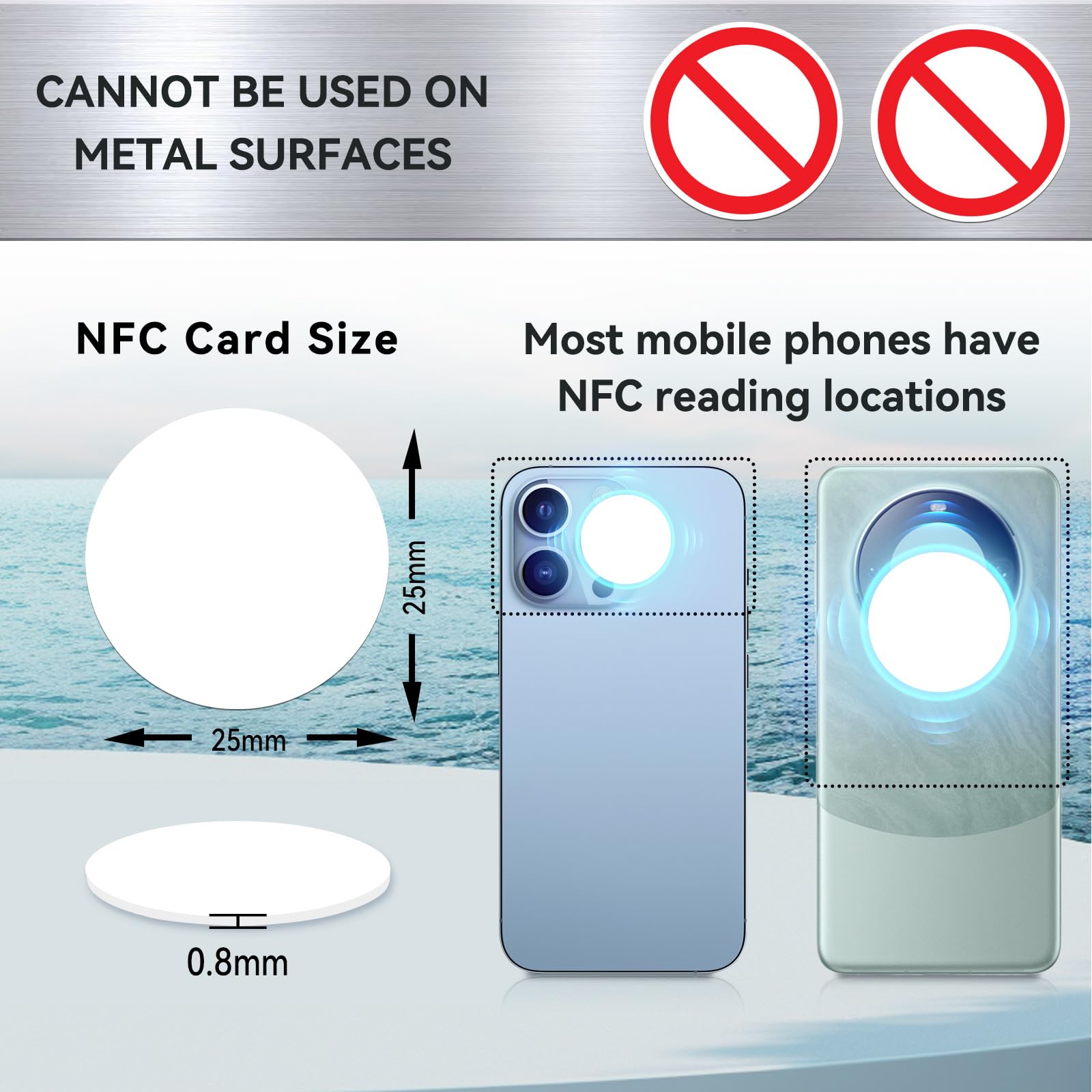 Small and portable : the size of round NFC card is 25 mm in diameter, small and portable to carry,Blank white NFC PVC cards thick plastic size tags. with glossy finish and waterproof pvc material, effectively protecting the NFC chip inside. Note: This product Not adhesive