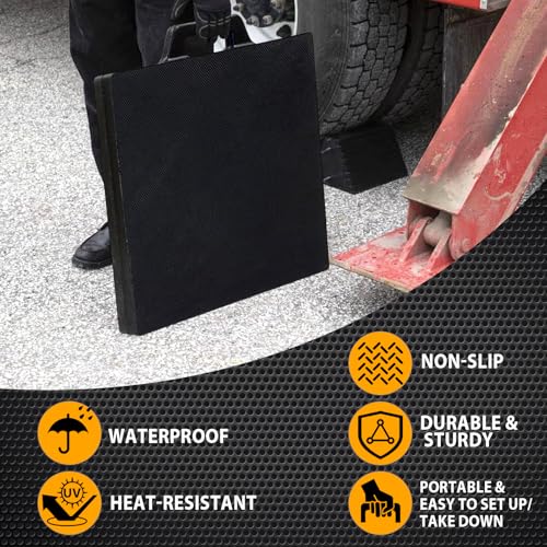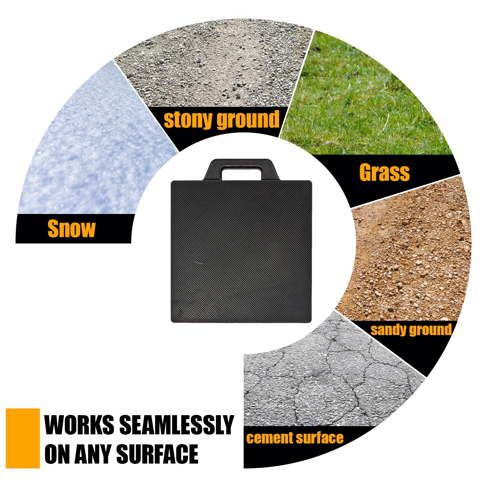 Non-Slip & Anti-Friction Design——The non-slip surface effectively prevents the jack pads from sliding, reducing wear on plastic leveling blocks and protecting equipment, ensuring stable use on both rugged and smooth surfaces.