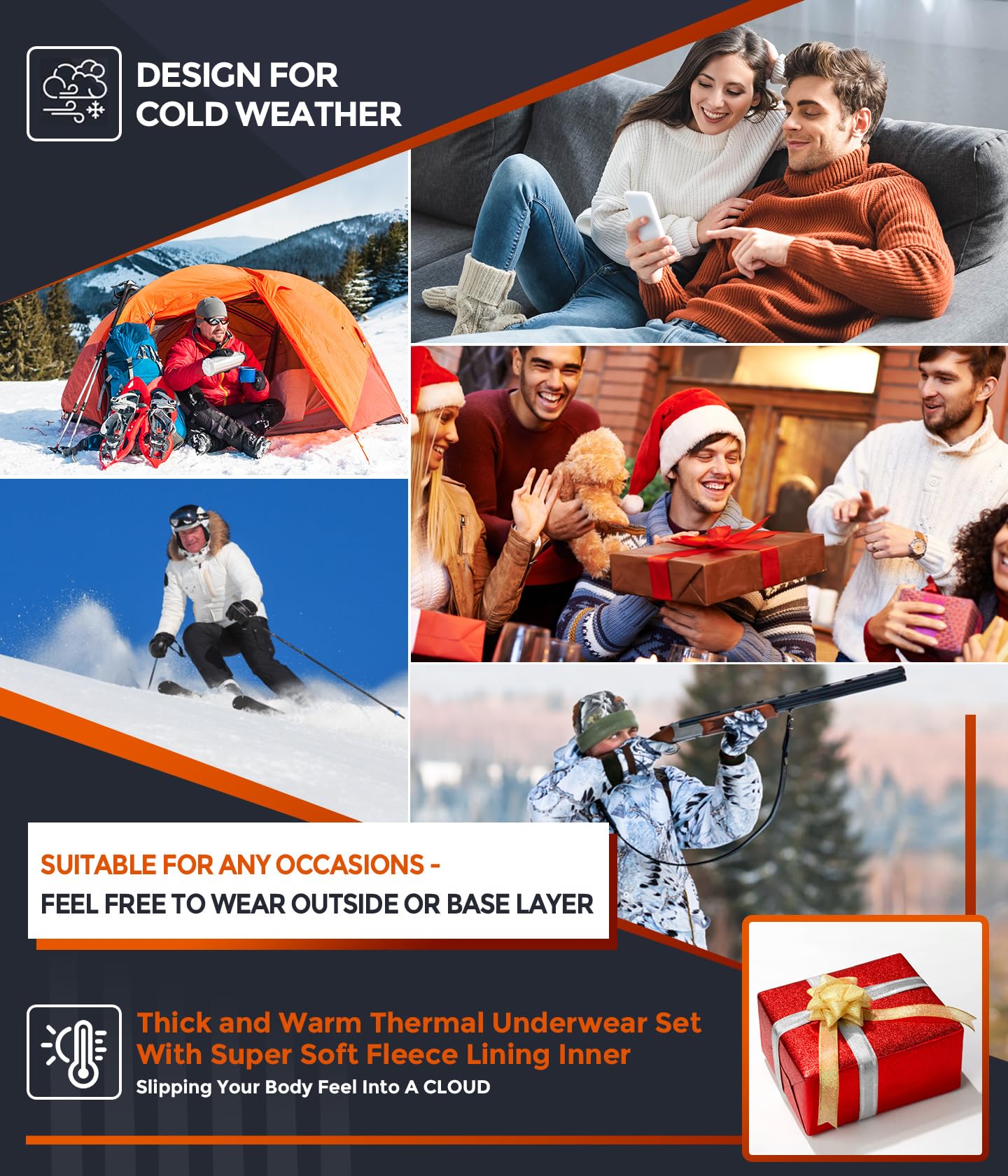 Strong Moisture Wicking: The unique breathable, moisture-wicking fibers on our thermal underwear will wick away moisture to keep you dry with no sticky or clammy feeling so you can wear them all day for your work or snow adventure