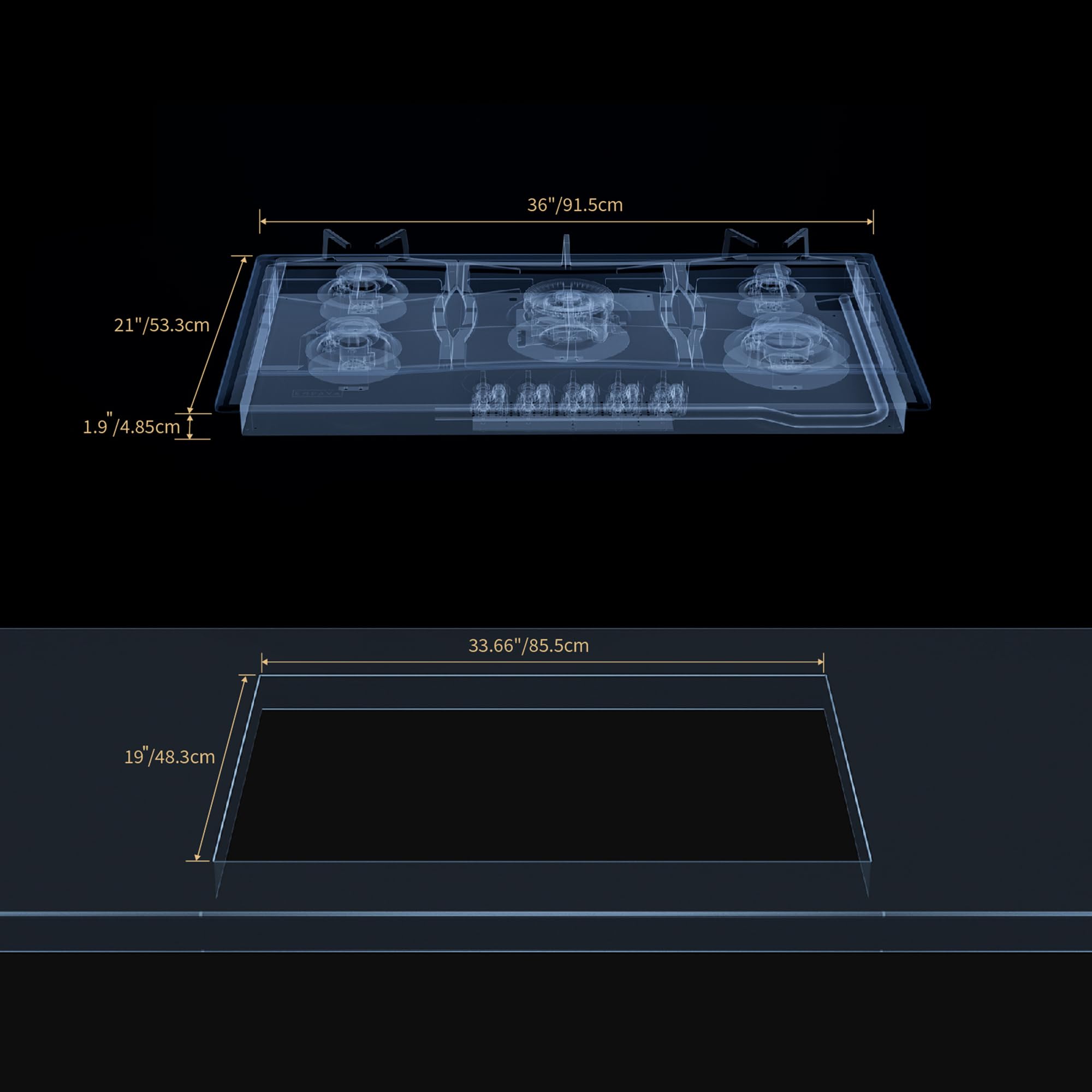 Optimized Installation Size: This gas cooktop 36 inch fits perfectly with Product Dimensions: 36.02" W × 21.0" D × 3.78" H and Cutout: 34.25" W × 19.61" D. Includes pre-installed 120V power cord and LPG conversion kit for immediate, hassle-free setup.