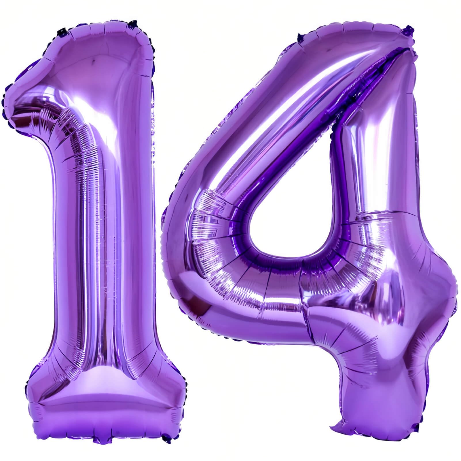 Color:Purple Packaged included:1 piece 40 inch Purple Number 1 and 4 balloon,1 straw to inflate. Purple 14 number foil balloons are the best for 14th birthday party, 14th wedding celebration, anniversary, ceremories celebration, business or big events party.Purple 14 Numbers balloons are perfect for birthday or anniversary party decorations. The jumbo design makes it wonderful backdrop in any occasions.Not only can create happy feelings for the party, but also allow you to take memorable pictures.You can DIY with other latex or foil balloons,makes your party more charming and impressive How to use:you can stick Purple 14 number balloons on the wall, window or door, you can inflate with both helium or air, you can even place them on the bed, floor or table, provide your party or home a good decoration.