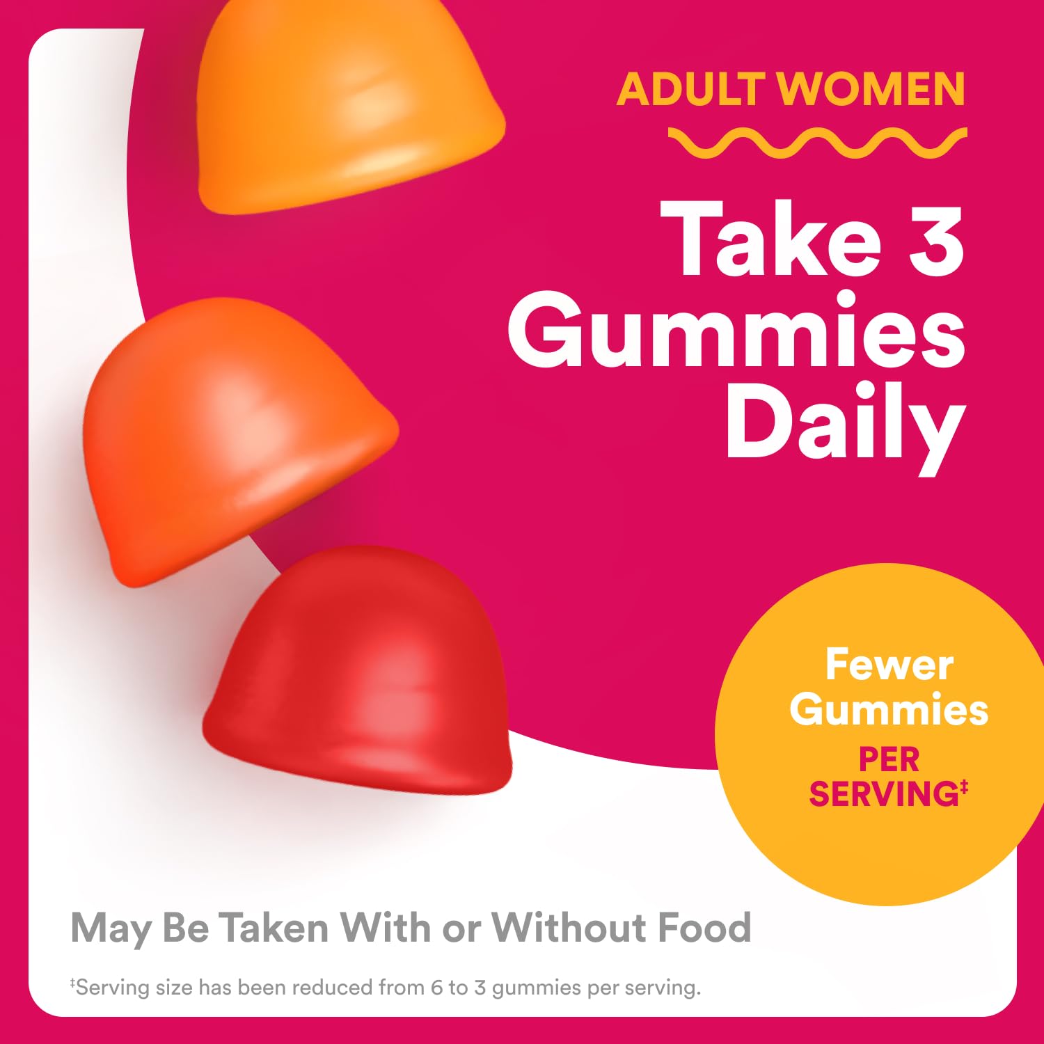 DELICIOUS TASTE: Strawberry, Orange, and Lemon Crème Flavors with Other Natural Flavors. Adult women now take 3 gummies daily. May be taken with or without food.