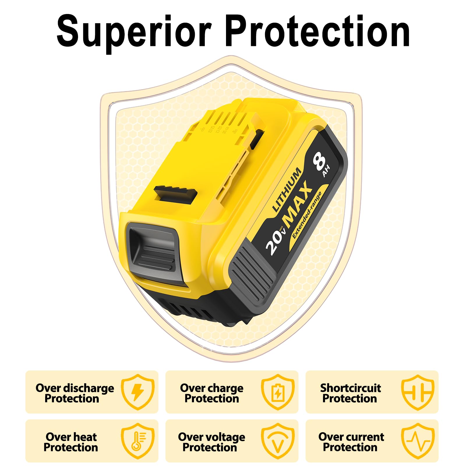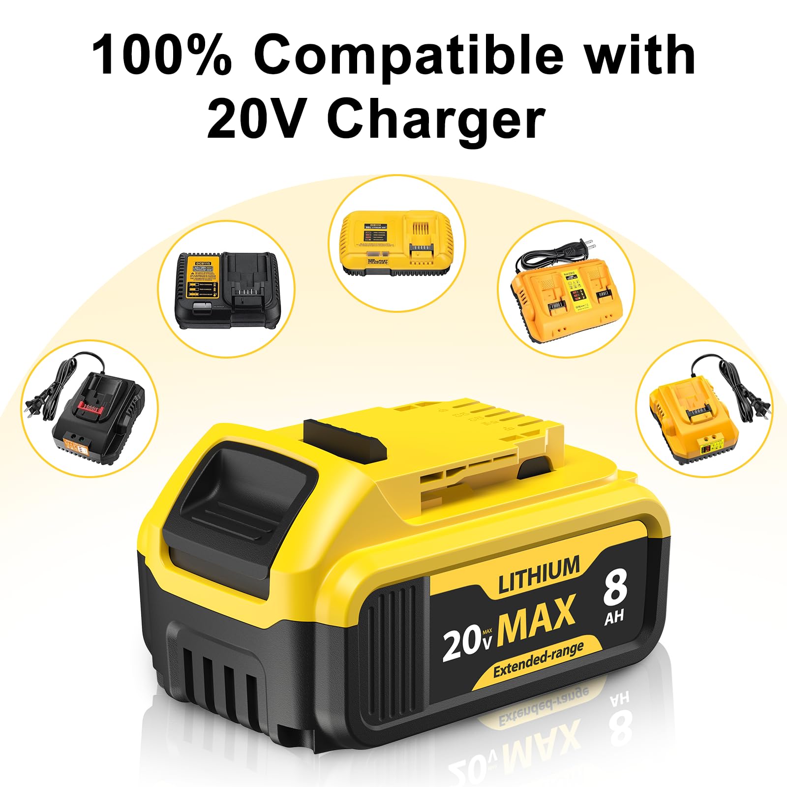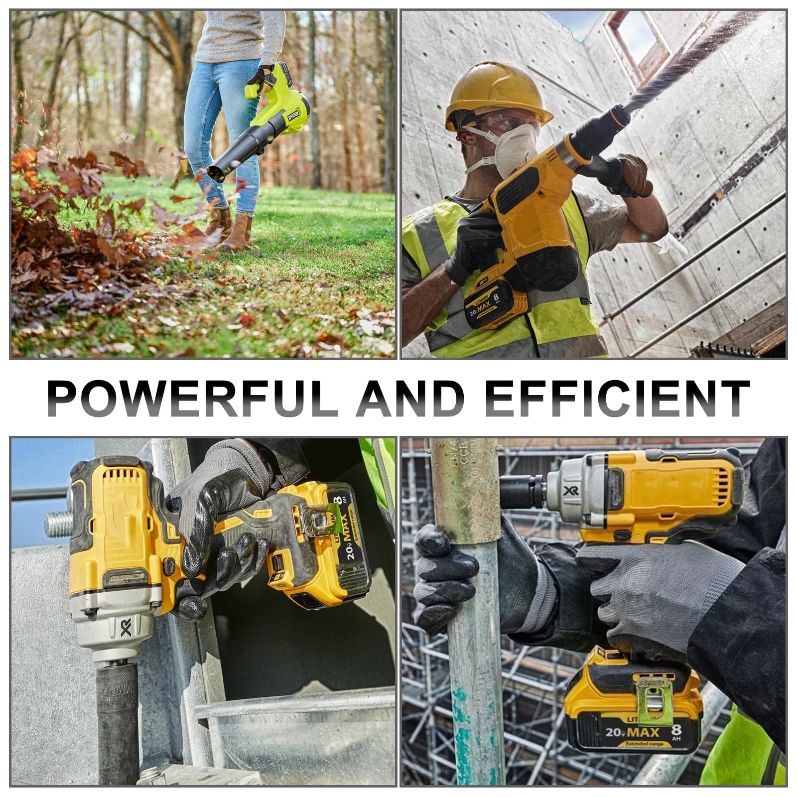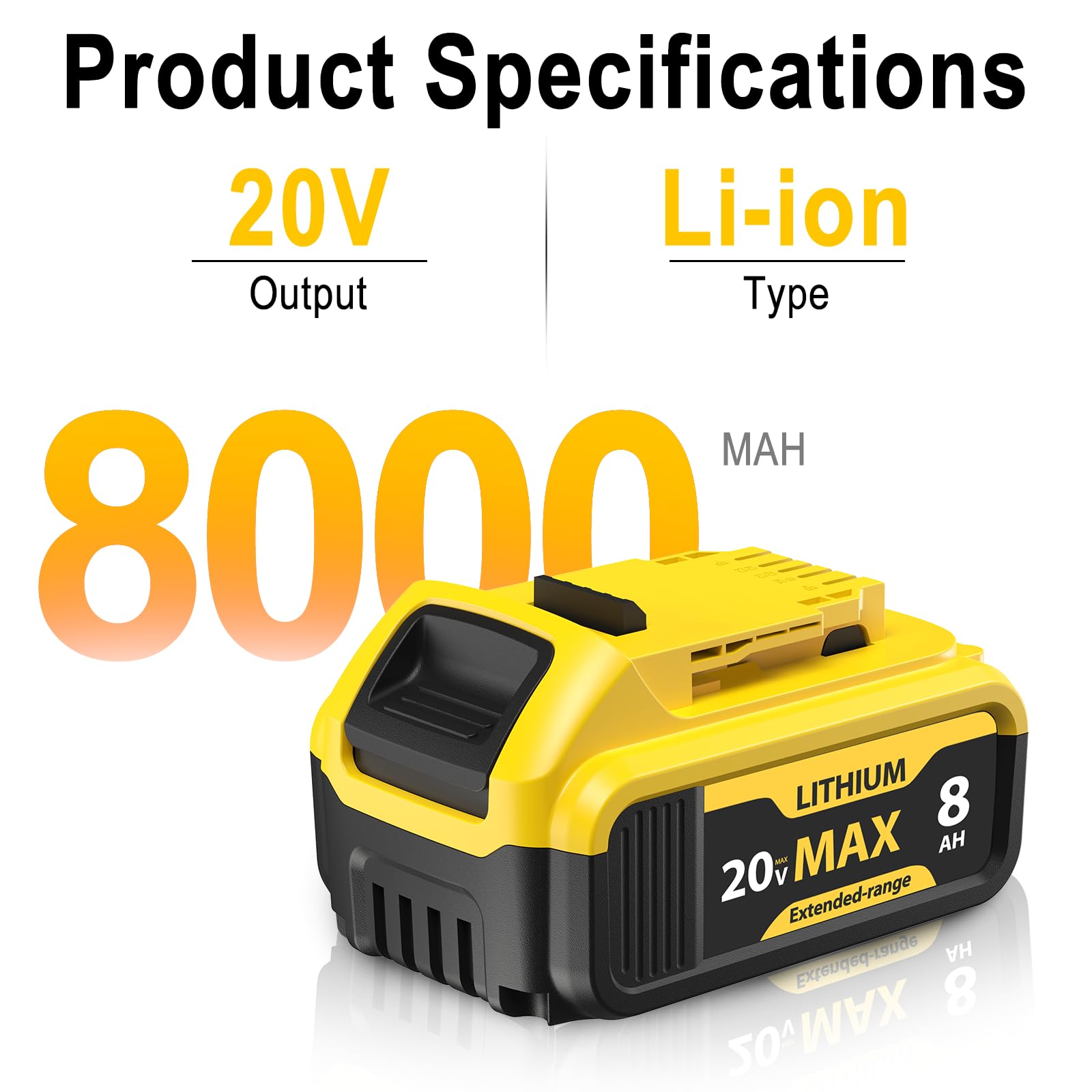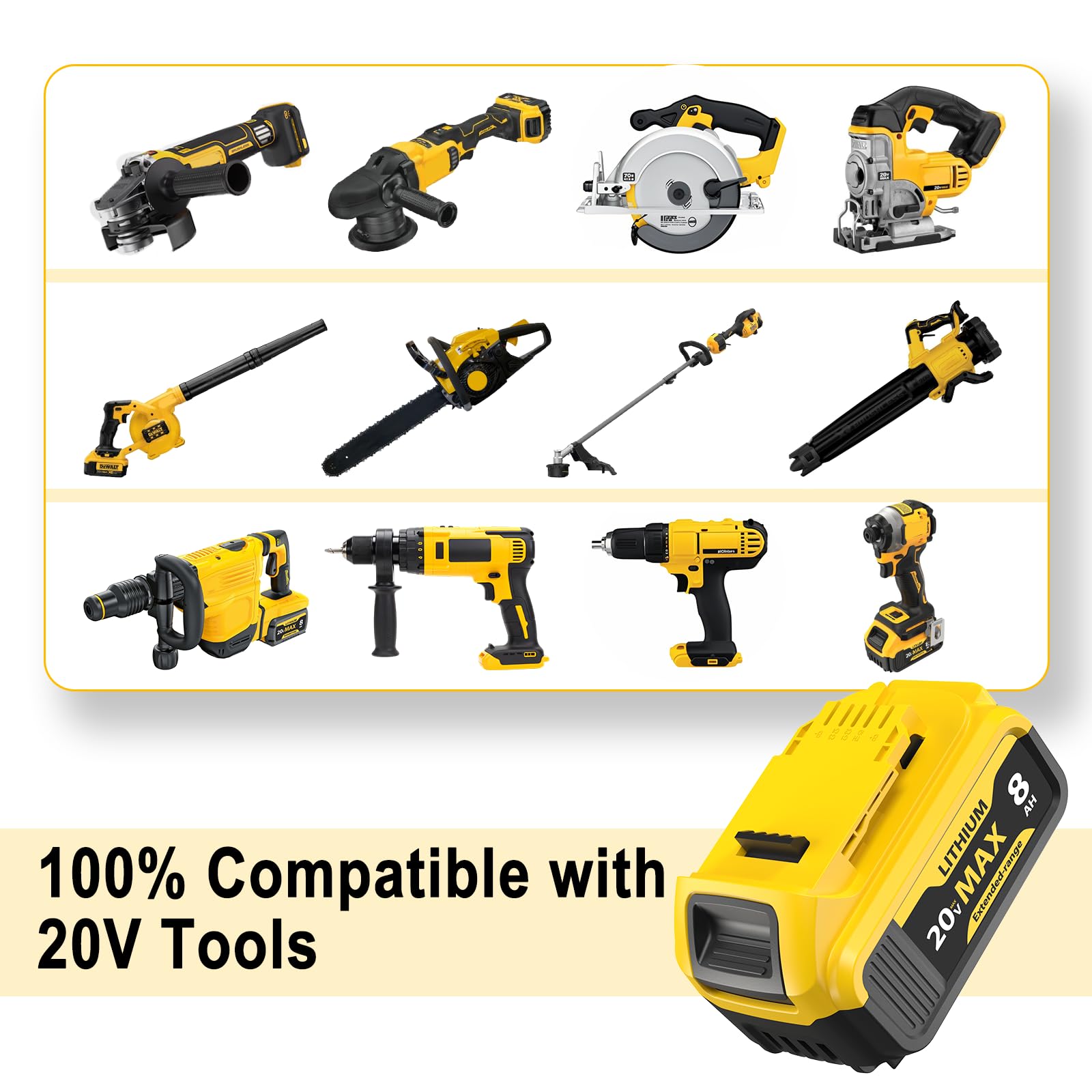 Ultimate Capacity & Voltage: Our 4-Pack replacement batteries boast an impressive 8000mAh (8Ah) capacity and a robust 20V voltage, ensuring your DeWalt 20V cordless tools operate at peak performance for extended periods.