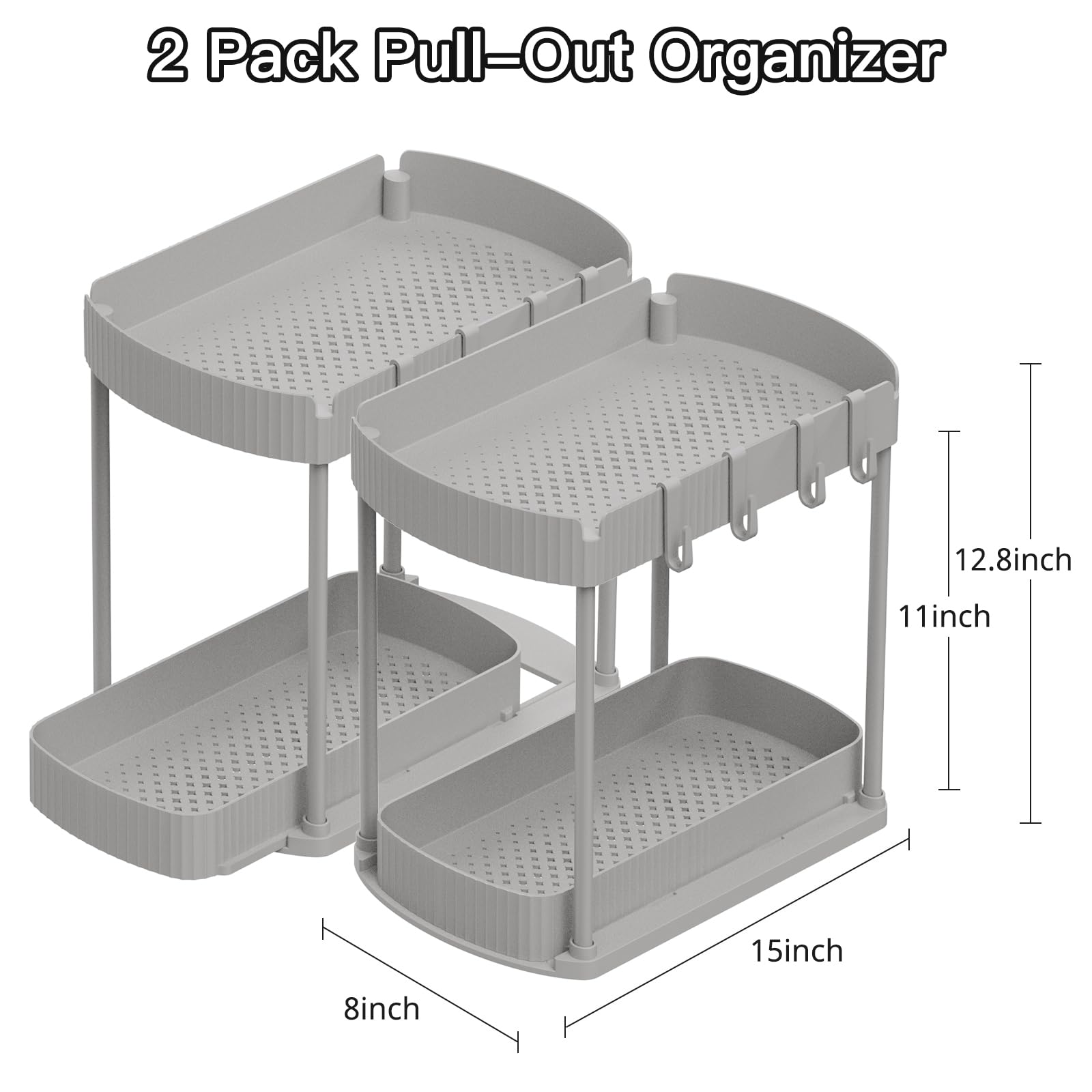 【2 Pack Value Set】Sized at 15” x 8” x 12.8” each, these organizers fit perfectly for bathroom organizers and storage, kitchen organizers and storage, under sink organizer and under cabinet storage.
