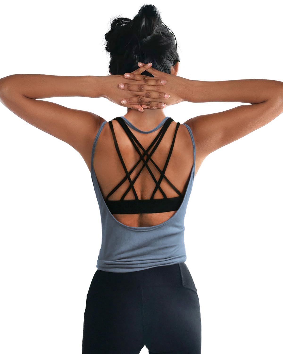 Design : This top is made of a light stretchy knit fabric. It is with unique and interesting backs, has a cooling effect on the skin, just what you want to stay cool in the summer while working out