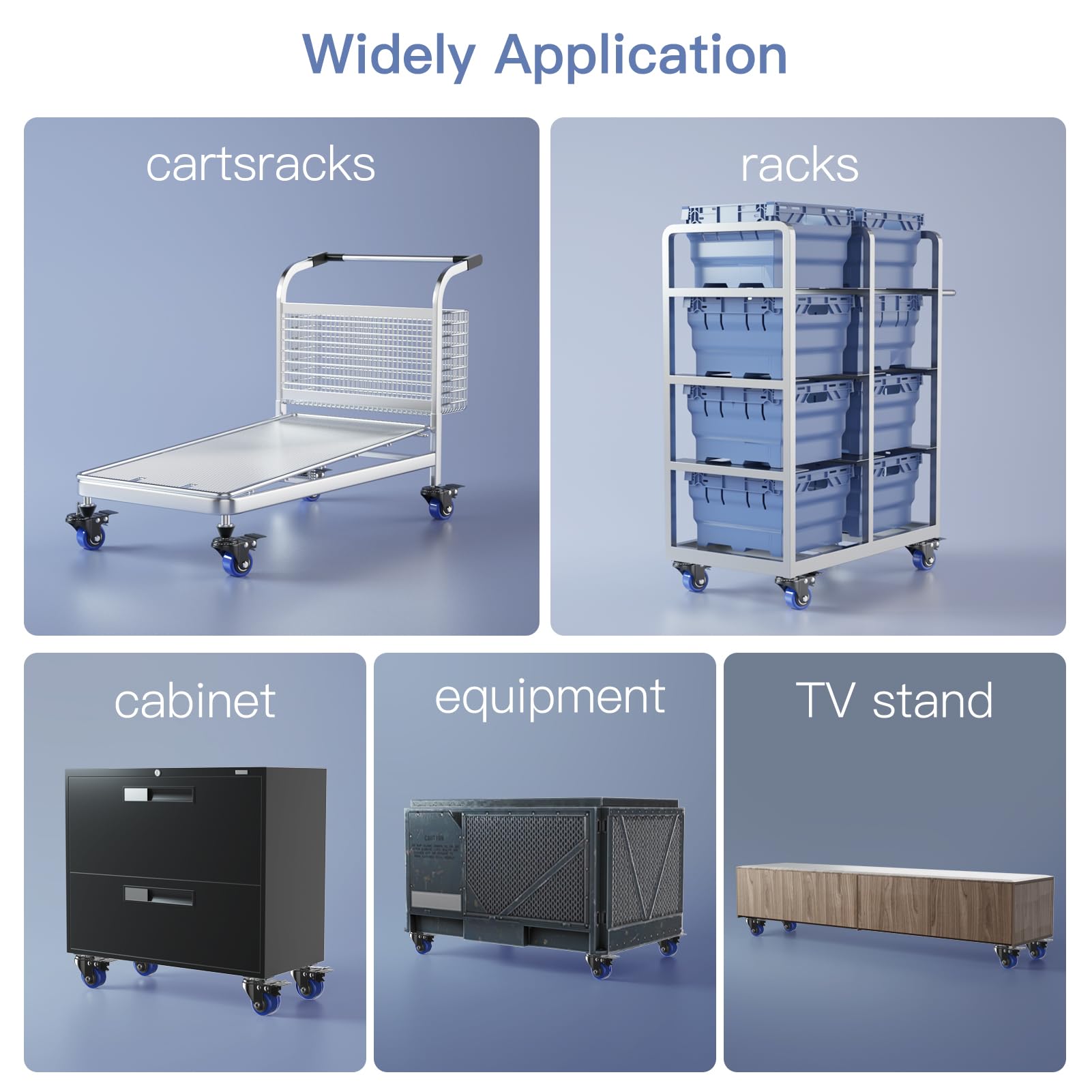 MULTITUDE OF USE: These thread stem casters set of 4 are widely used, quickly attach to generally used for workbench, cart, trolley, shelf, wooden cabinet, furniture, home appliances, etc. Whatever your workplace needs assistance making mobile, our caster wheels are a quick fix.