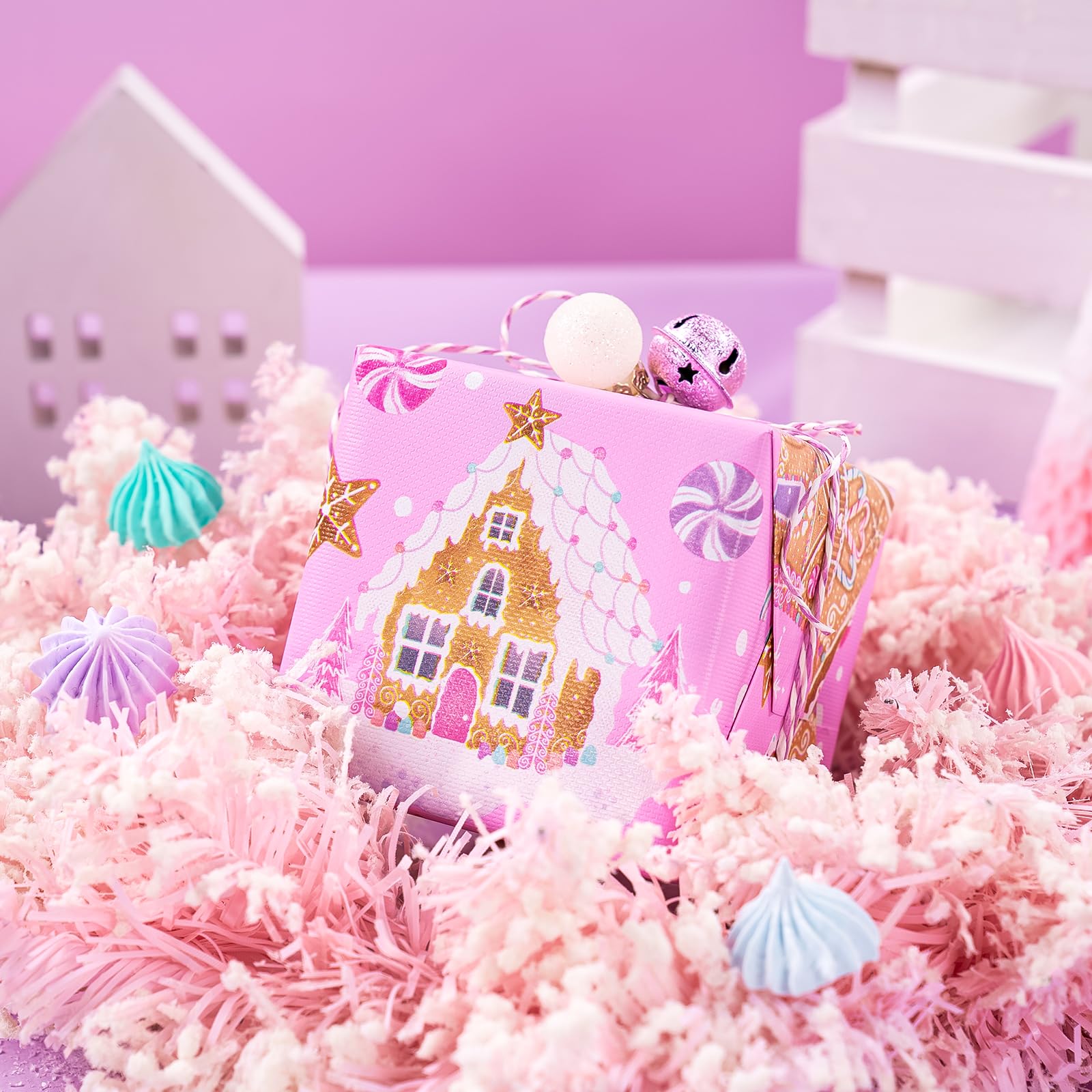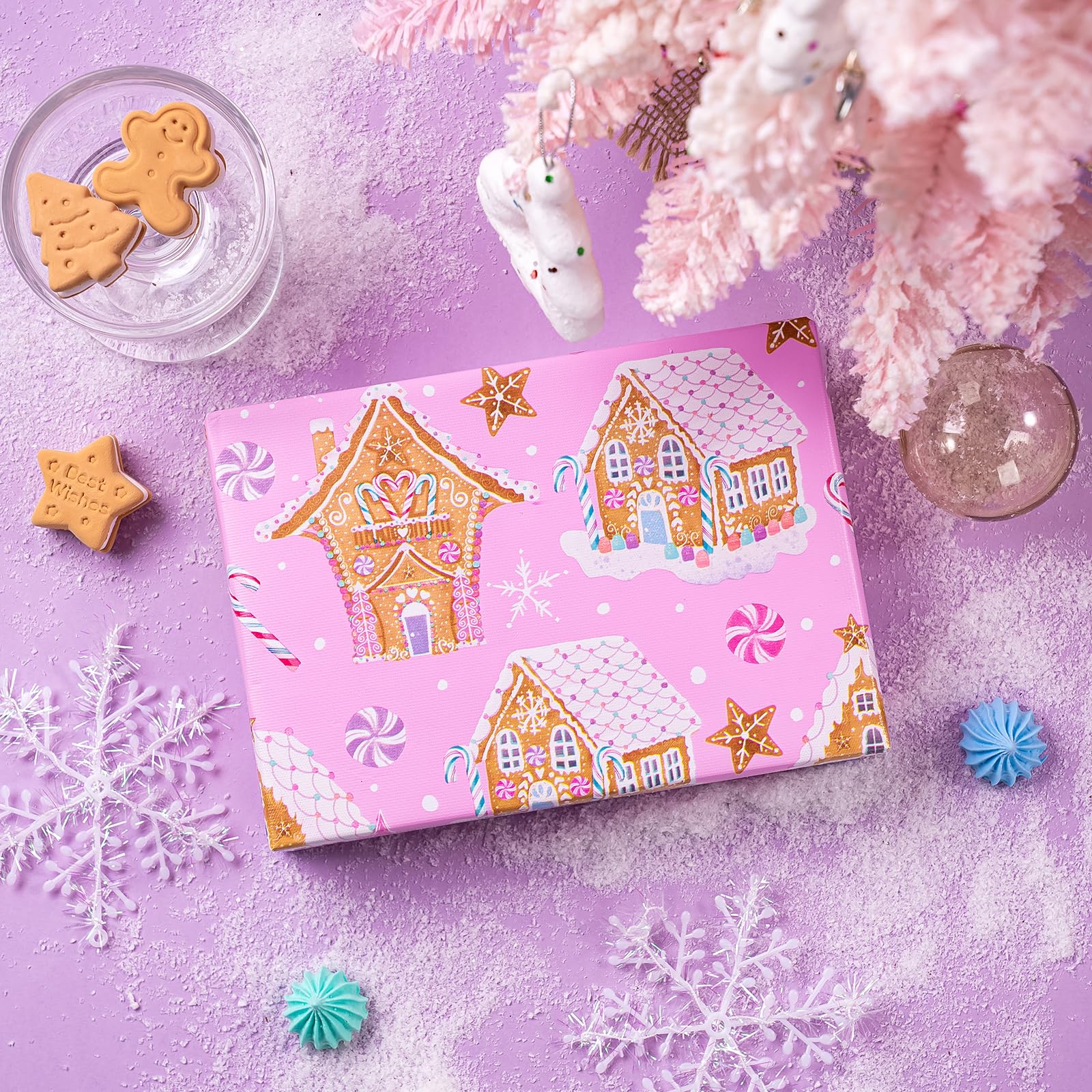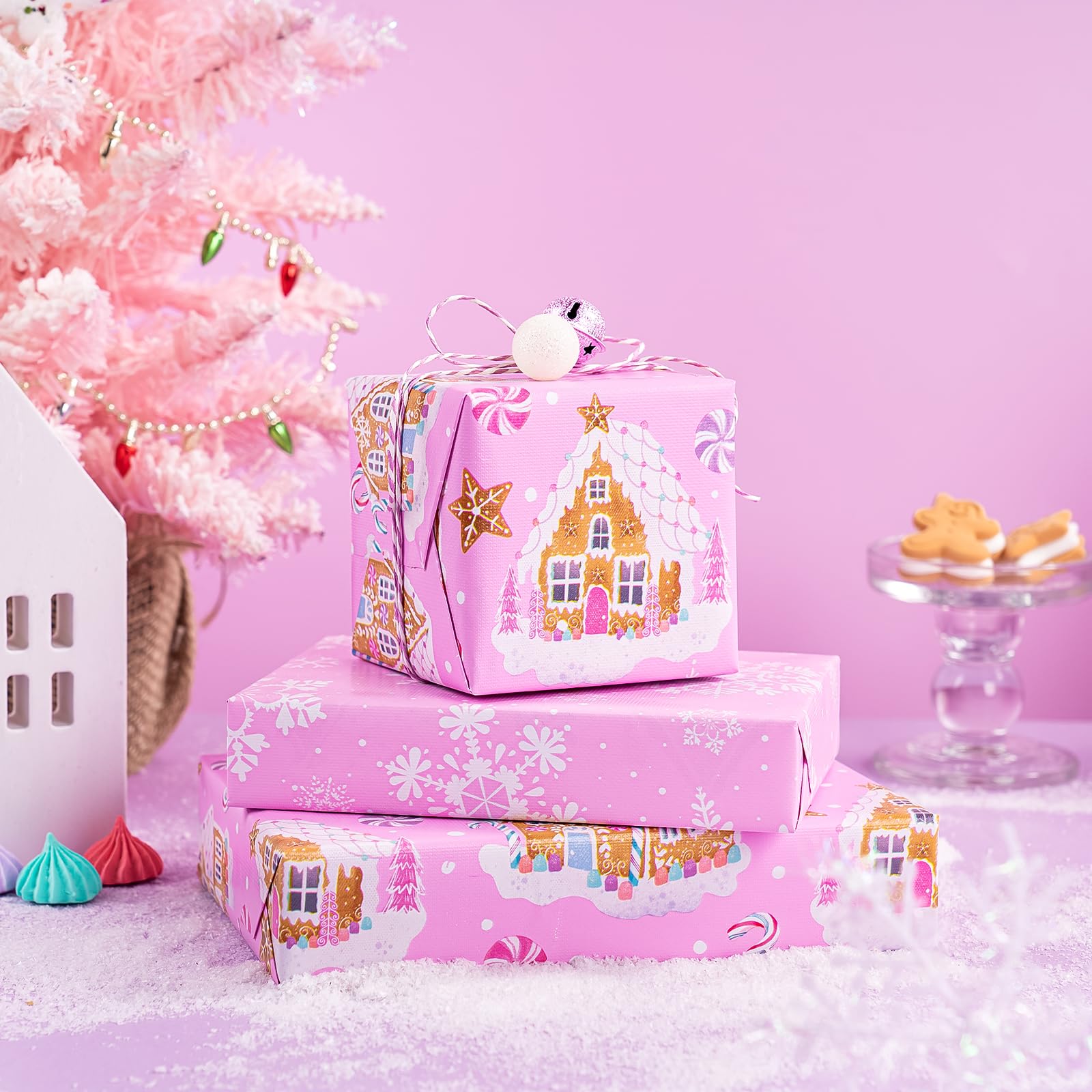 Perfect Size: Each roll measures 17 inches wide x 33 feet long, which provides you with a total of 46.5 square feet of paper. It's perfect for any small or medium - sized gift and is also very convenient to store. Reversible Design: Pink gingerbread house with embossed printed on one side, pink and white snowflake printed on the reverse. Two different designs make unique and varied gift presentations easy. Premium Quality: Created with high-quality paper materials, thick and not easily tear or rip. Item came with shrink film to prevent wrapping paper from scratches and reduce dust. Use All Winter: Whether it's the joyous celebration of Christmas or the holiday season filled with family gatherings and gift - giving traditions, it is an outstanding choice. It is also great for decorating the Christmas tree. Wrap Your Love for Christmas: You can wrap your love with our special Christmas wrapping paper, adding a splash of color to all of your gifts. Your family, children, and friends will feel your sincere Christmas wishes this holiday season. Quality Customer Service: Any question about products or orders, please feel free to contact the customer service, we will try our best to solve the problem.