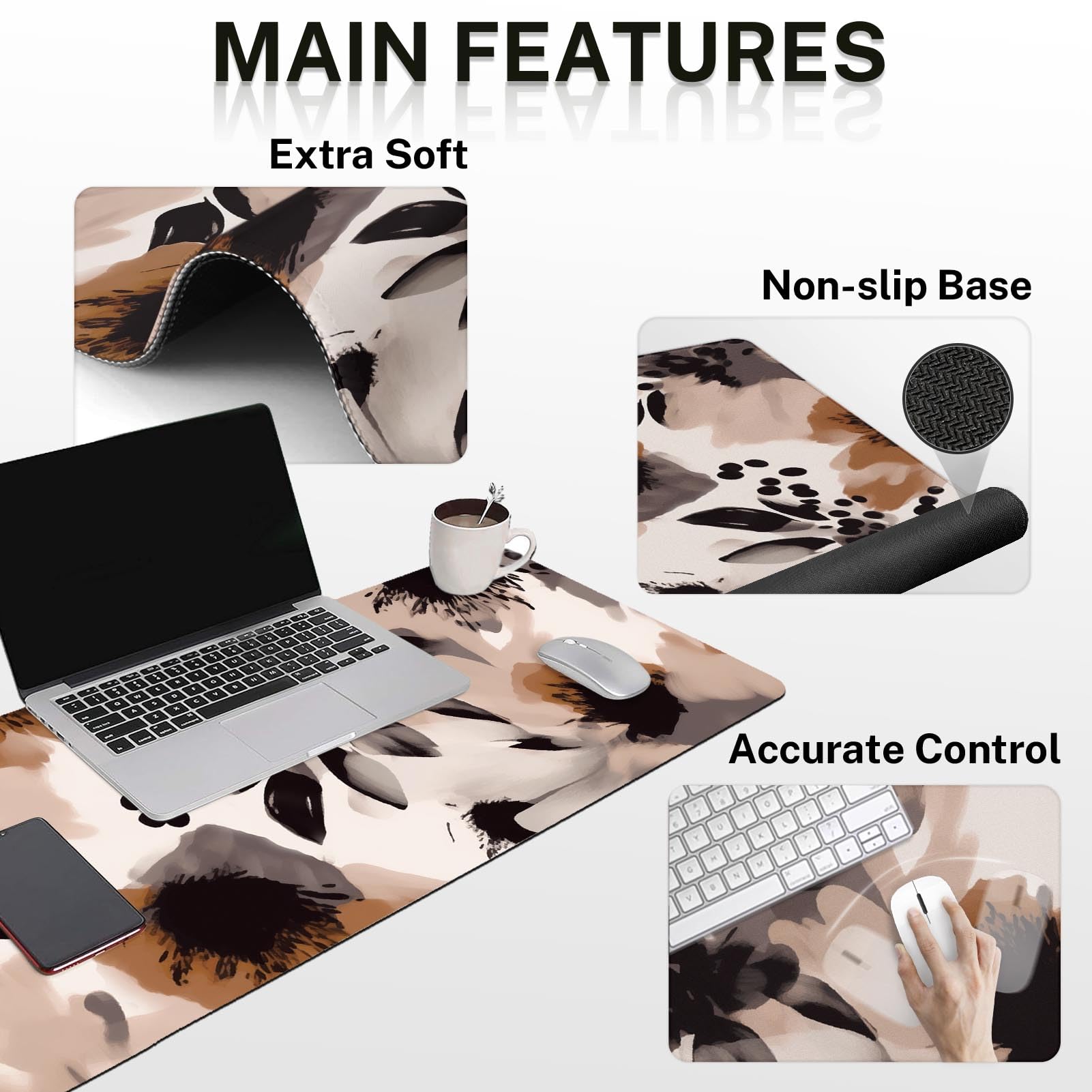 Ultra-Smooth Surface for Precision:The smooth fabric surface of the desk mat allows for easy,precise mouse movements.It also provides a comfortable environment for your hand during operation.The surface is optimized for fast movements without sacrificing speed or control during your work or gaming sessions.It is compatible with both mechanical and optical mice.
