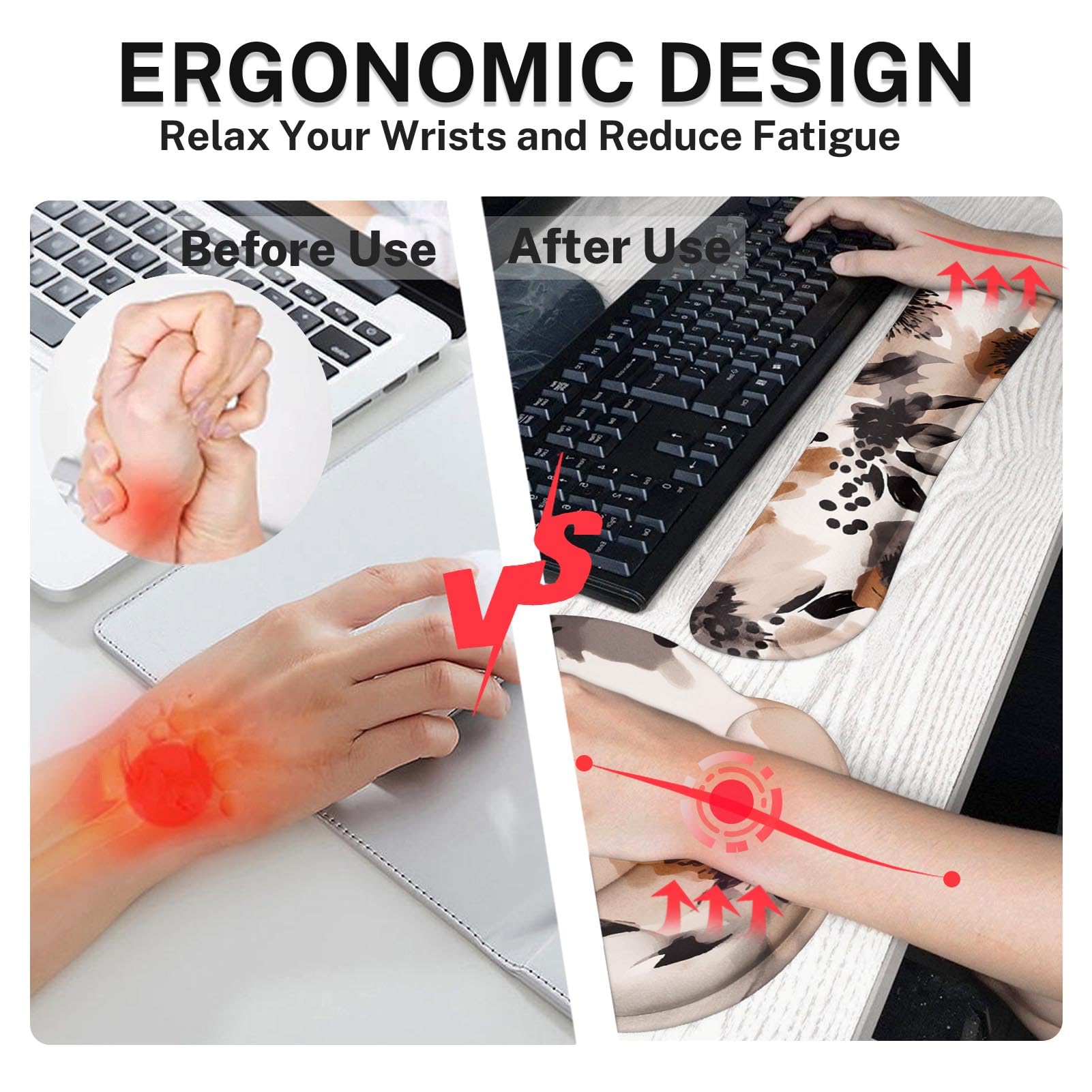 Ergonomically Designed for Comfort:The mouse pad and wrist support set are designed with memory foam and covered with a soft,smooth material,ensuring lightweight comfort and durability for your daily work life.They are ergonomically contoured to prevent soreness in your arms,wrists, and hands during long working or gaming sessions,thus significantly reducing stress and fatigue.