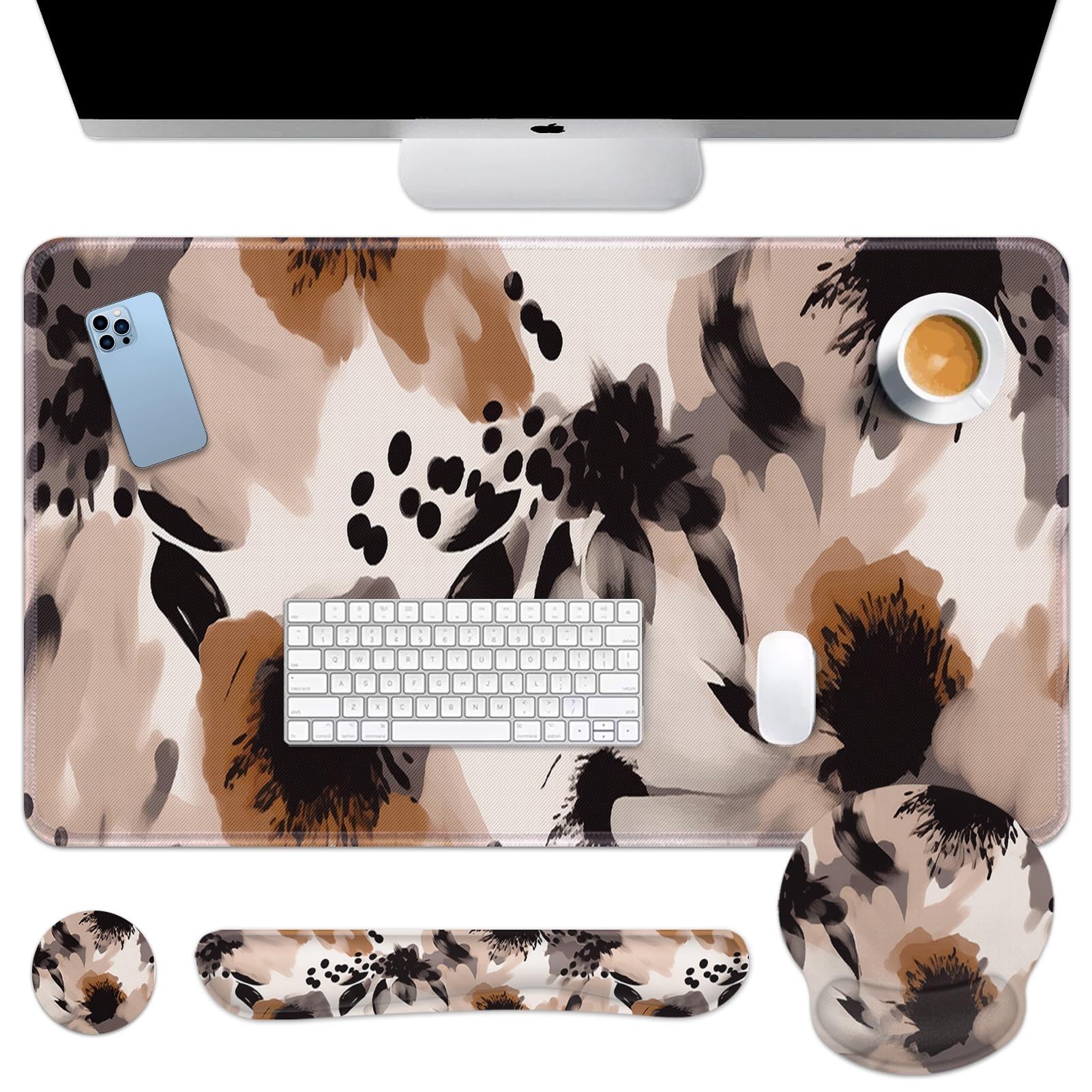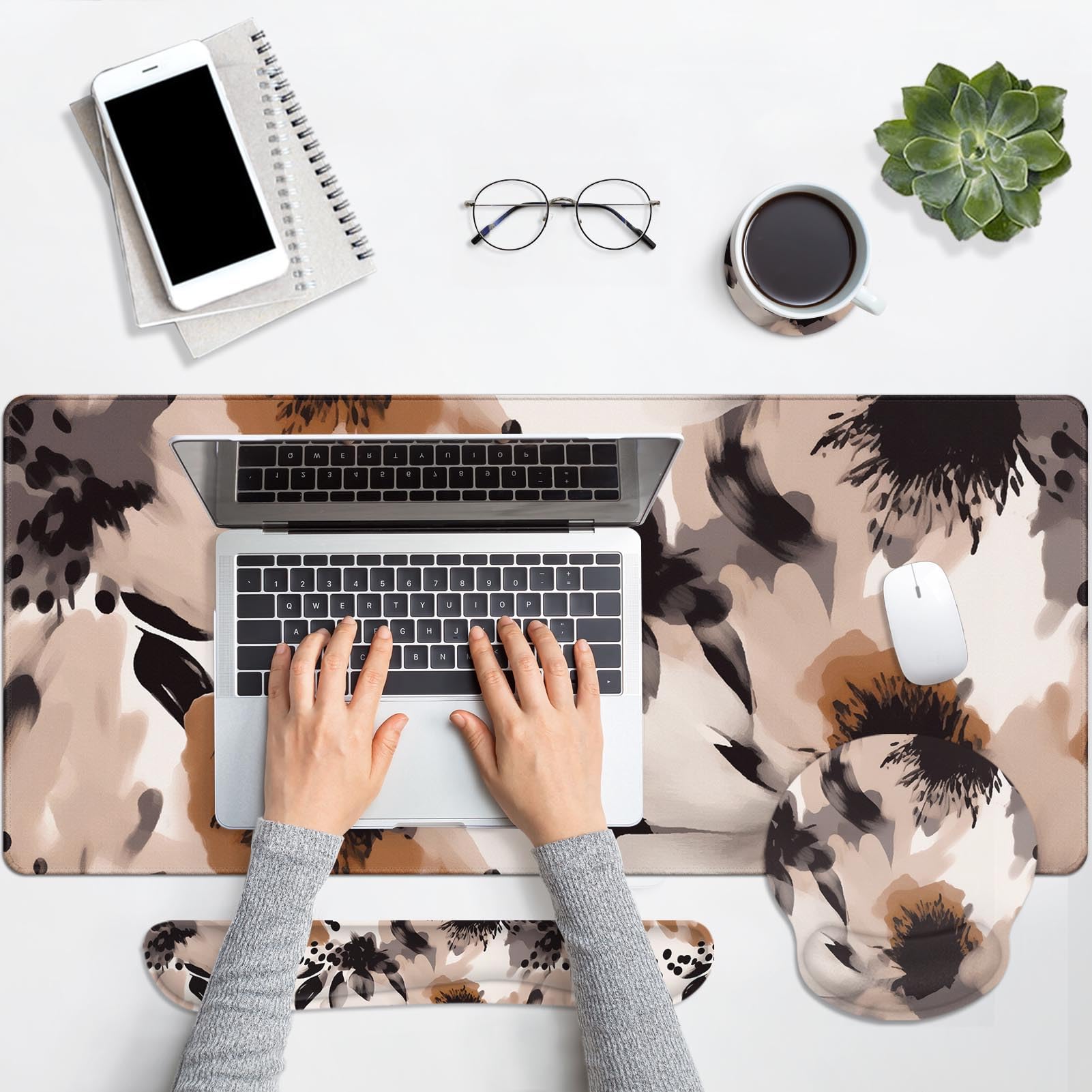 Stylish and Vibrant Design:Our extended mouse pad and keyboard wrist rest feature advanced printing technology,resulting in clear,vibrant patterns that add a touch of fun and relaxation to your busy life.Ideal for study,work,gaming,or as an elegant decor,these non-slip desk pads with wrist support cater to all your needs.