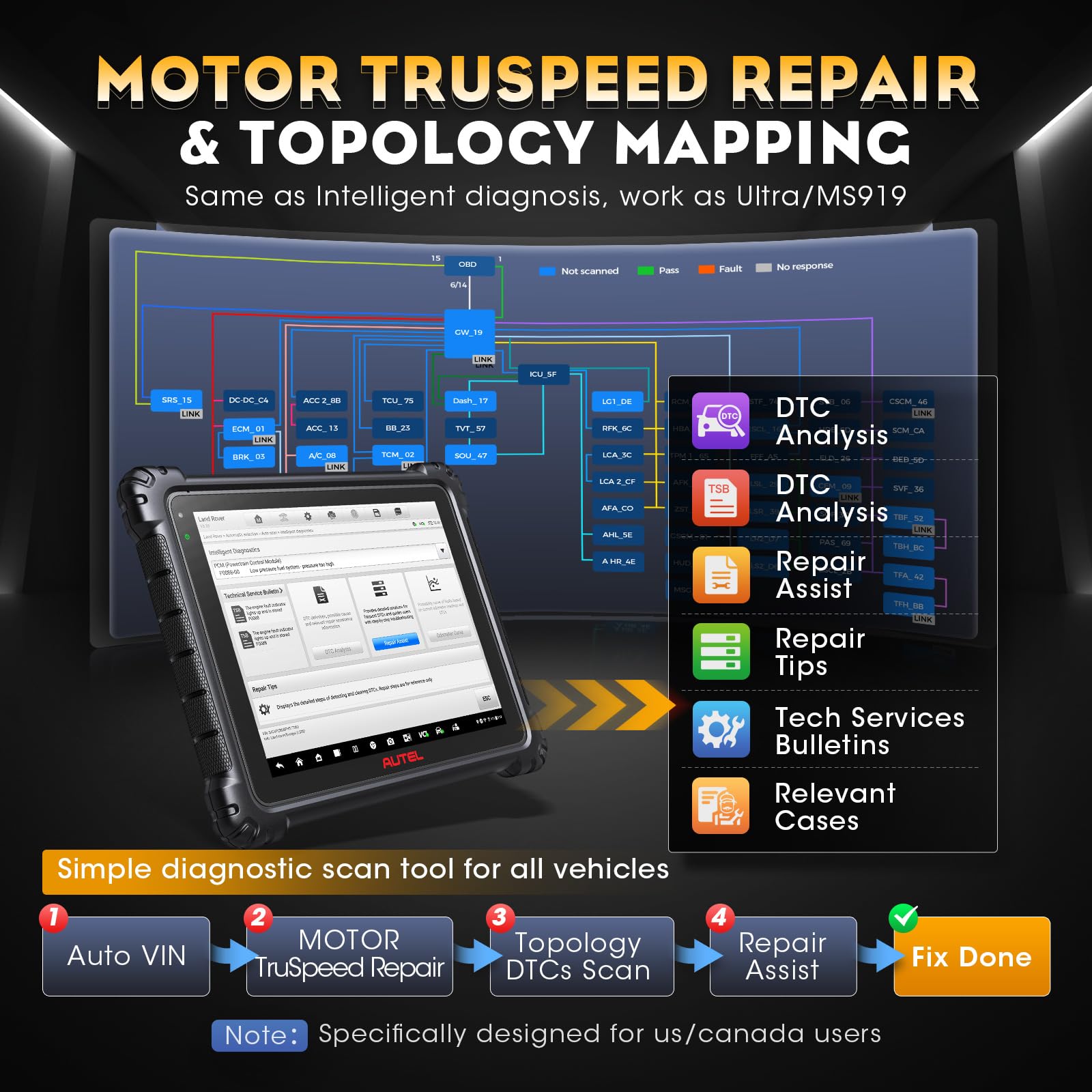 ● 📣【2.0 Version Newest Motor TruSpeed Repair & Topology Mapping】Like OEM/ Snap-on scanners, Autel Ultra Lite works as AI expert to quickly locate issues by Motor TruSpeed Repair. Through TSB, Component Locations, DTCs, Maintenance Schedules, Repair Procedures, Specifications, Wiring Diagrams, OEM Position Statements and ADAS-related repair details., it guides you to troubleshoot faults without the need for a dealer-only tool. Save your money and time! PS: MOTOR TruSpeed Repair is optional paid