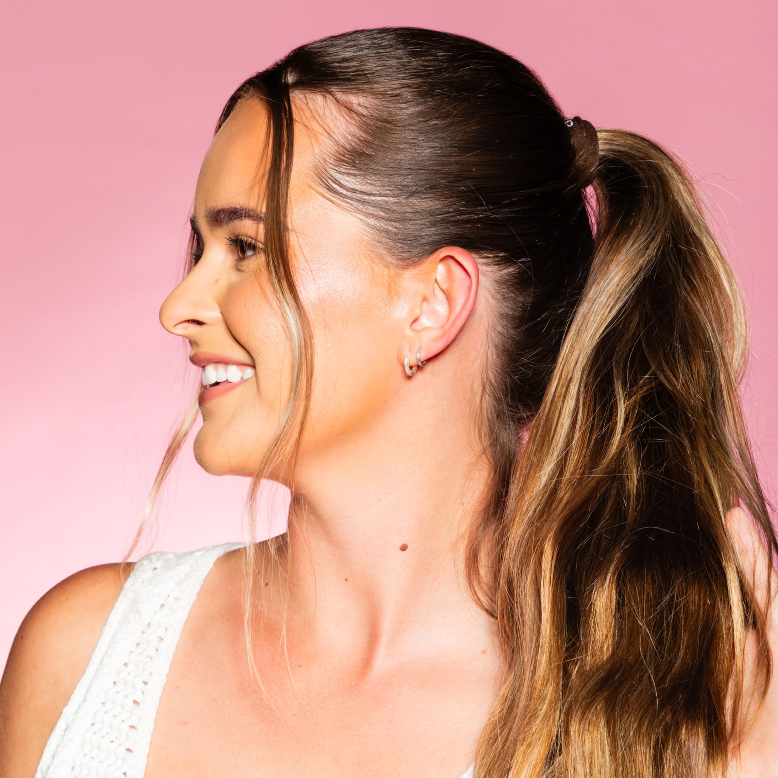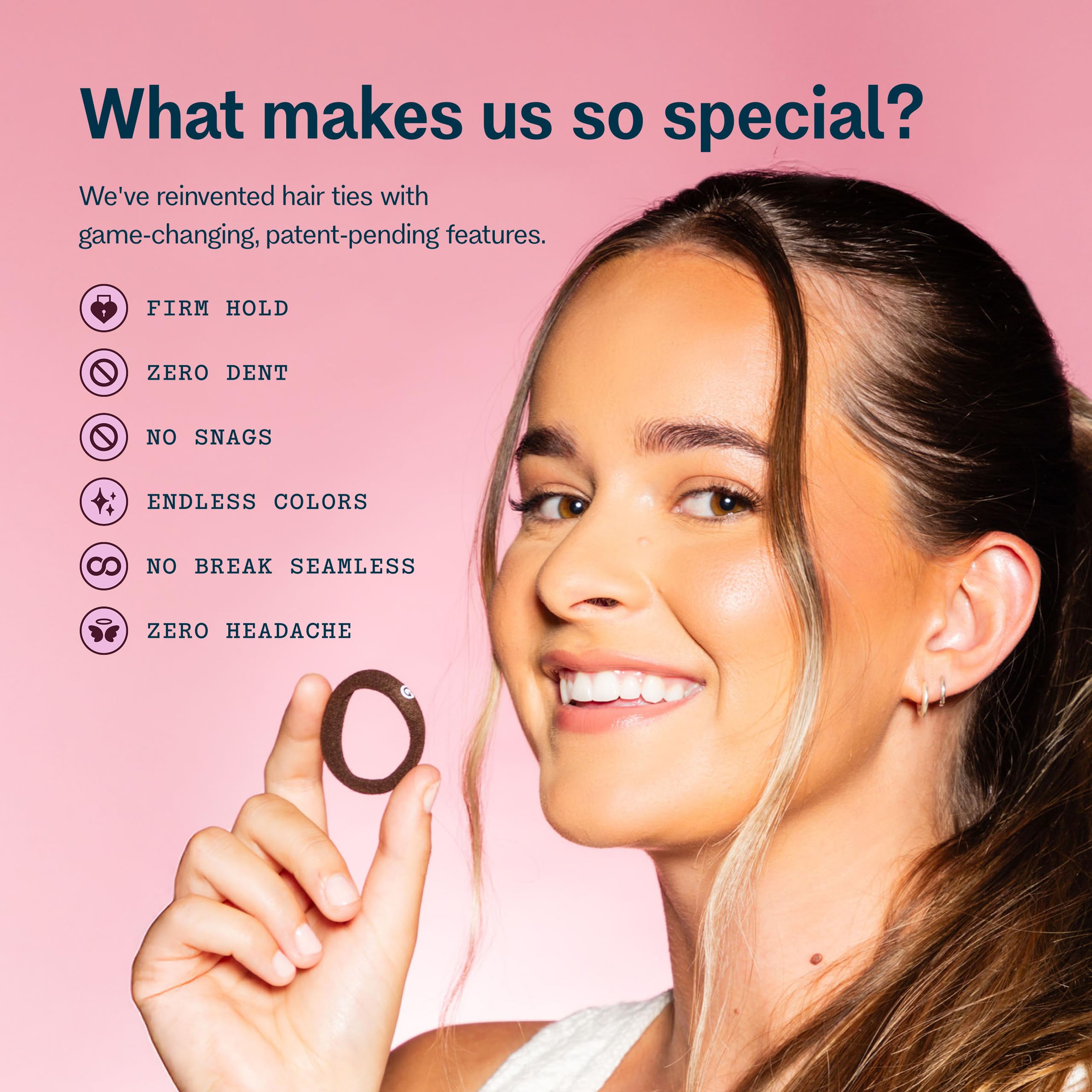 Experience the difference of hair ties specifically designed for extra-fine hair with Gimme Beauty X-Fine Hair Bands. These innovative elastic hair ties feature a patent-pending design that's 20% slimmer than standard elastic bands, offering the perfect solution for delicate strands while providing reliable hold throughout your day.These hair elastics are thoughtfully crafted with seamless construction to help prevent the common discomfort of headaches and hair dents.The specialized blend of nylon, silk, and spandex materials works to maintain a secure grip while being gentle enough for everyday use, making them ideal for creating comfortable, long-lasting hairstyles.Each hair band in this pack features a unique stretch-to-fit design that adapts to your styling needs.Whether you're securing a ponytail, finishing off a braid, or creating intricate hairstyles, these elastic hair ties offer the perfect combination of flexibility and hold for extra-fine hair types.The washable and reusable design ensures these comfortable hair bands maintain their performance through repeated use. Their color naturally complements your hair shade while providing inconspicuous styling versatility. The convenient pack includes a reflective logo for easy identification and comes with enough hair ties to keep your favorite hair accessories within reach wherever you need them.At Gimme Beauty, we believe hair solutions aren't one size fits all.We understand that each person's hair journey is unique, which is why we've designed these hair ties to work for all hair types, helping you feel confident and unstoppable in your daily life.We celebrate the sisterhood that grows from our shared experiences with hair. While some brands focus on exclusivity, we believe in creating accessible, inclusive products that work for everyone. Our mission goes beyond hair accessories—we're here to amplify your confidence because we know that confident women are unstoppable.